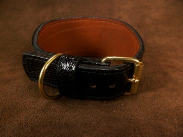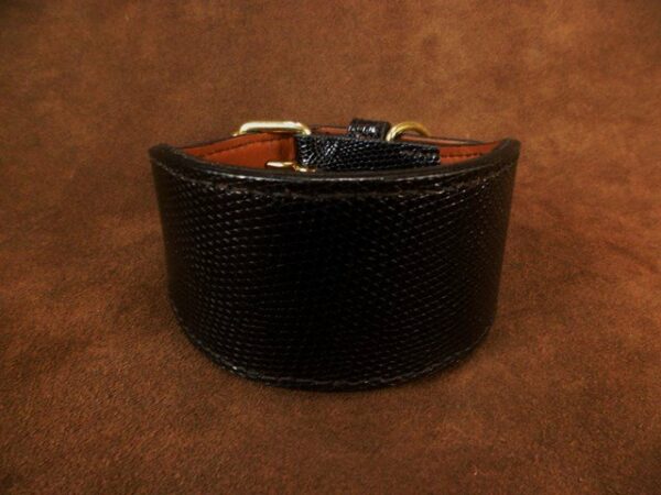 Collier pour lévrier en cuir de lézard – 6 cm de large – Artisanat d’exception .