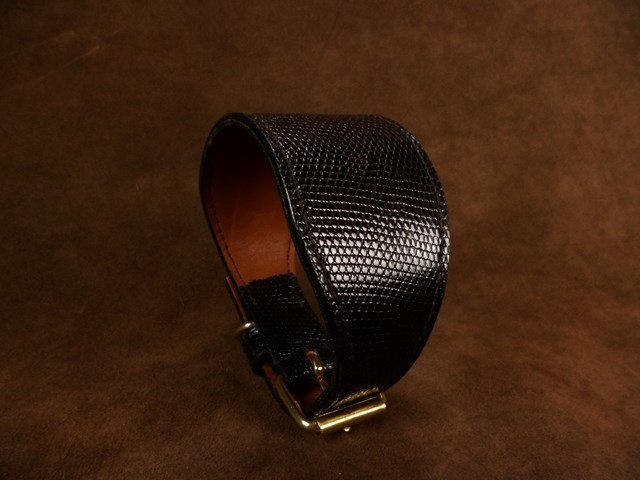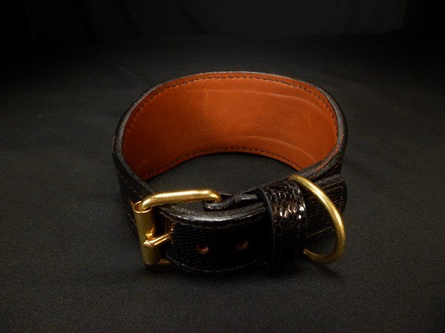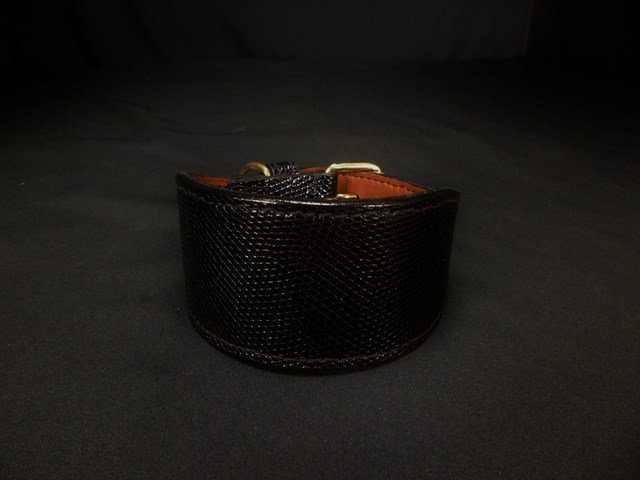 Collier pour lévrier en cuir de lézard – 6 cm de large – Artisanat d’exception .
