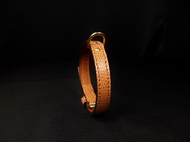 Collier pour petit chien en Lézard véritable 1,6 cm large .