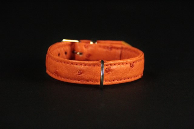 Collier pour petit chien en peau d’autruche véritable – 2 cm de largeur .
