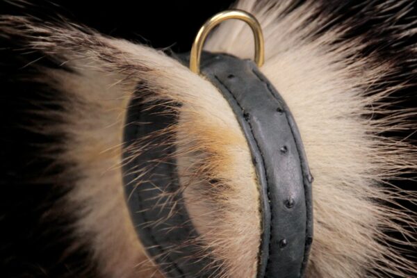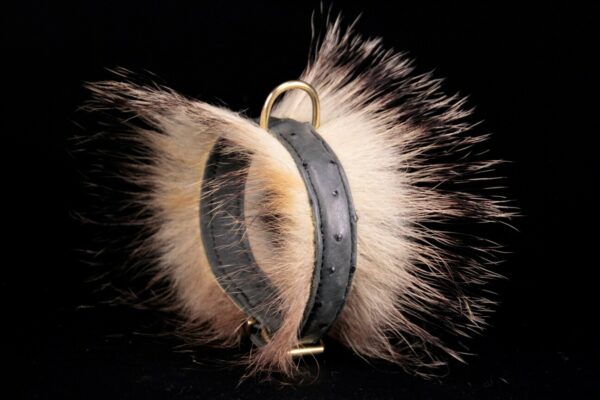 Collier pour chien en peau d’autruche poils de blaireau 2,5 cm de large .