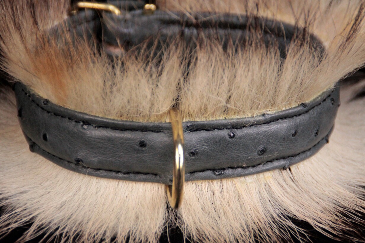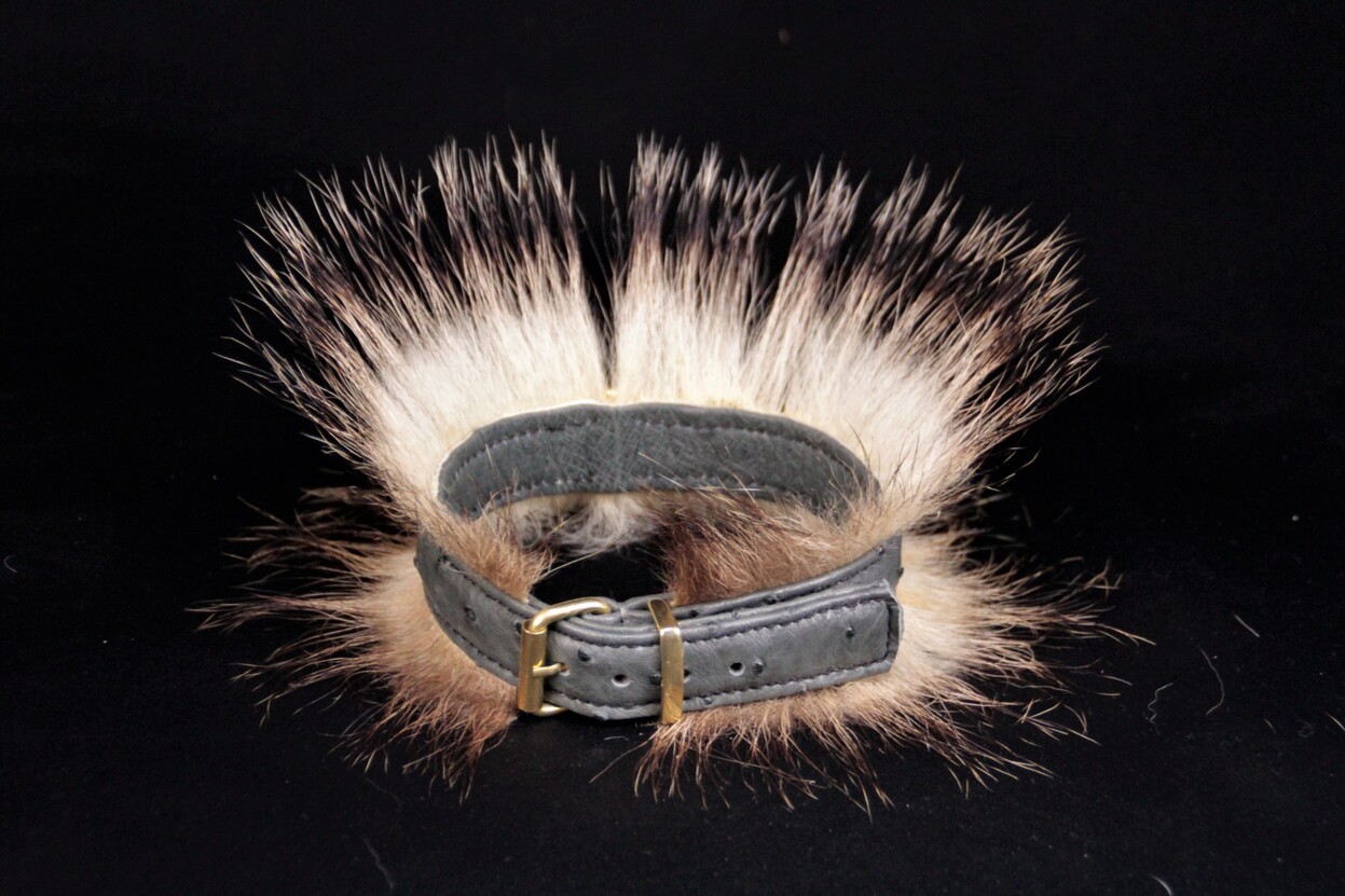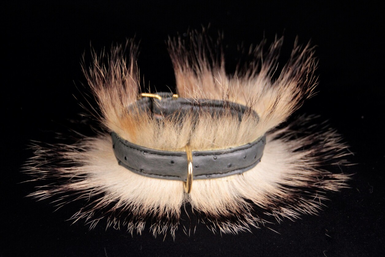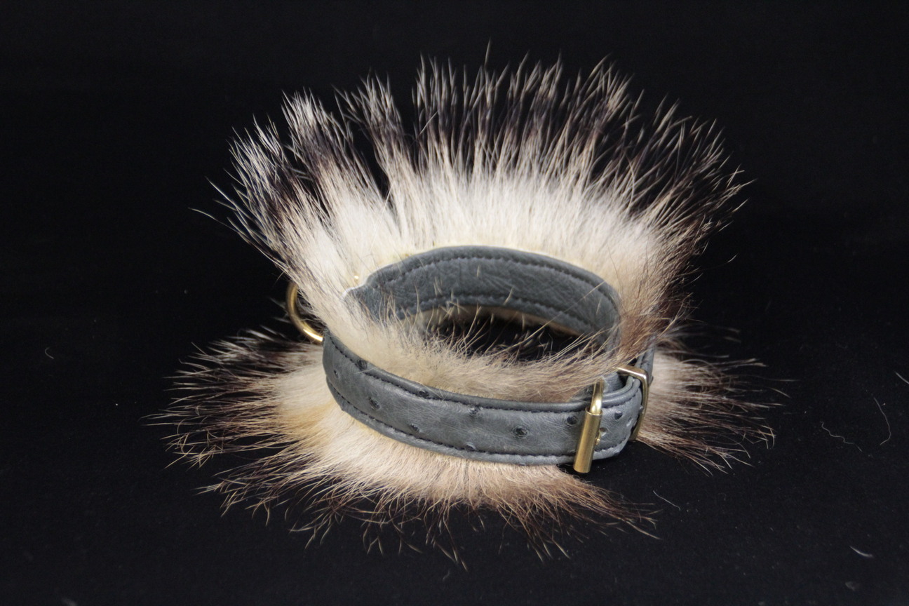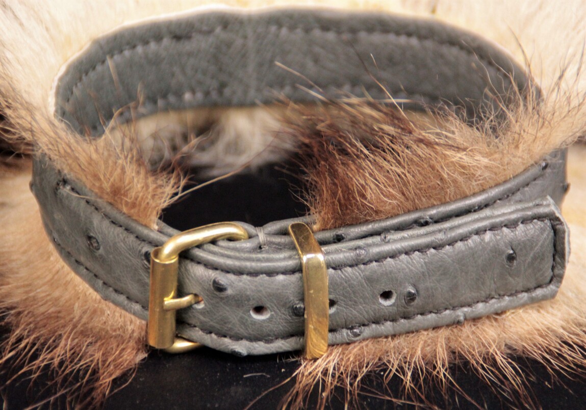 Collier pour chien en peau d’autruche poils de blaireau 2,5 cm de large .