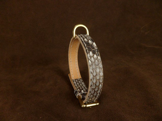 Collier pour petit chien en cuir de python véritable – 1,6 cm de largeur .