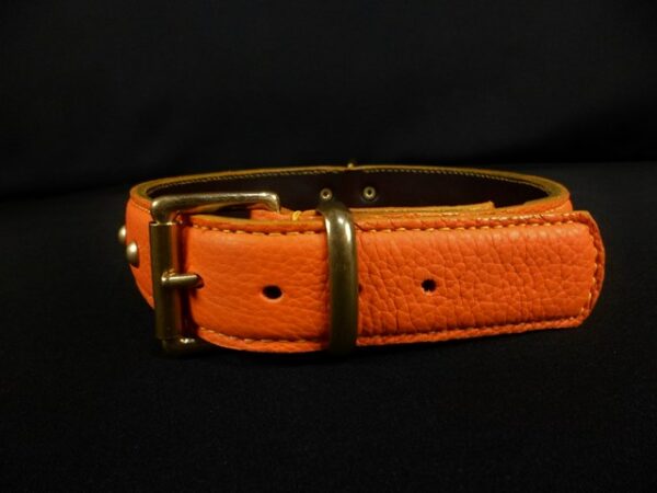 Collier pour chien en cuir de taurillon avec clous ronds en laiton – Élégance robuste et artisanat d’exception (3,5 cm) .