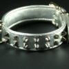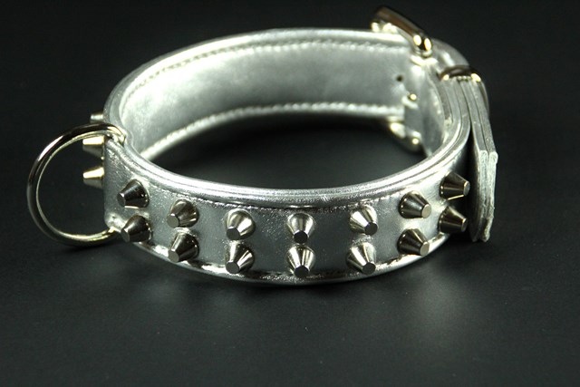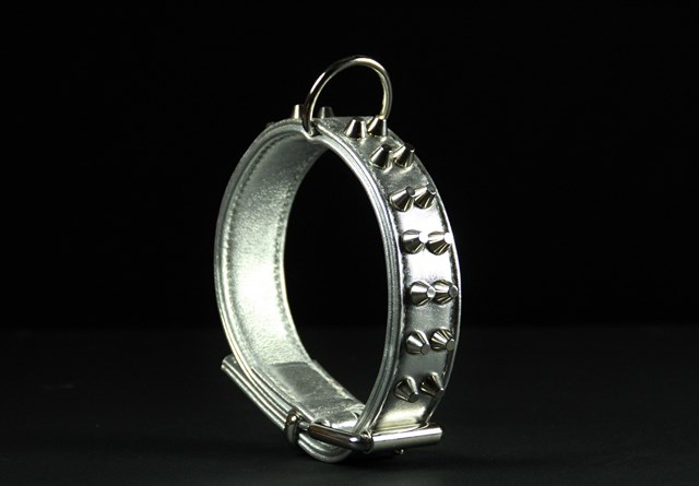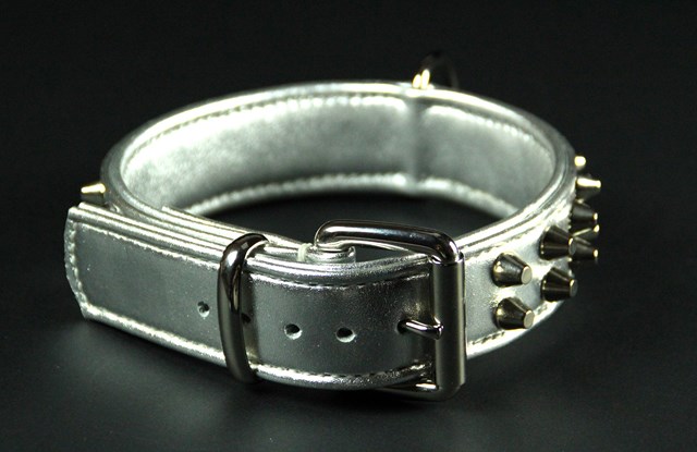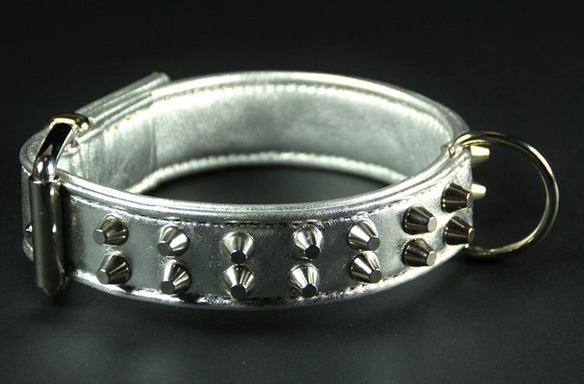 Collier pour chien en veau métallisé , clous nickelés 3,5 cm large .