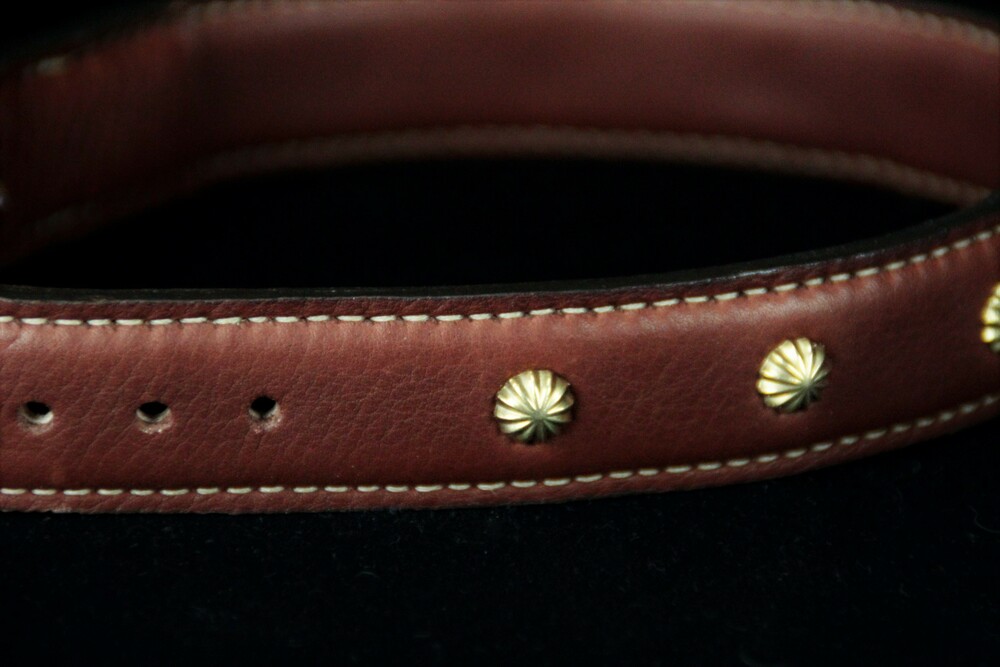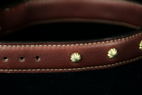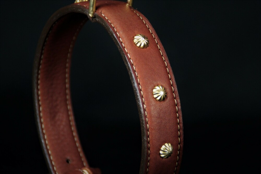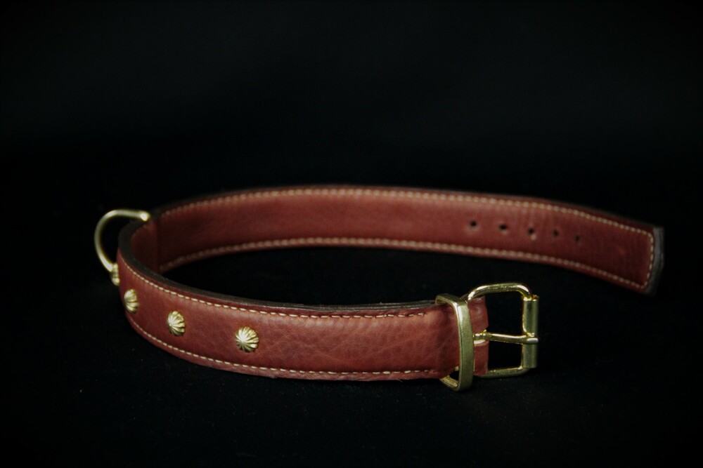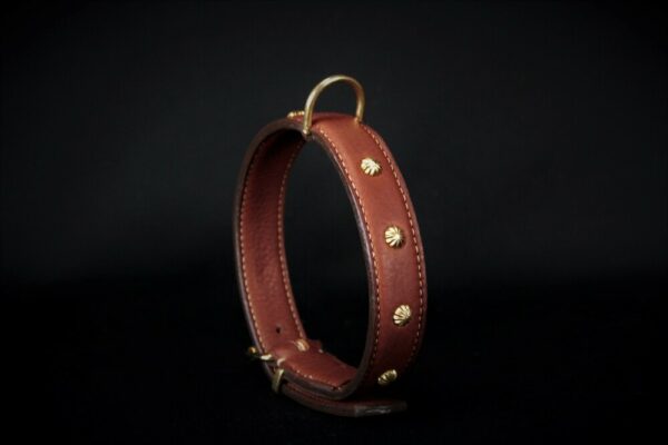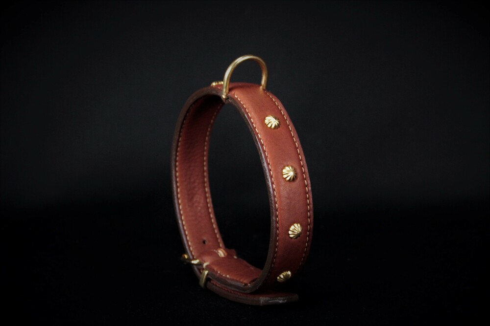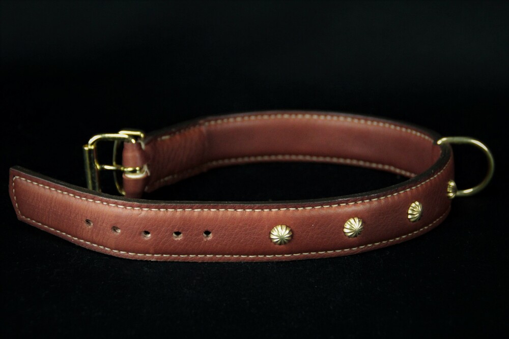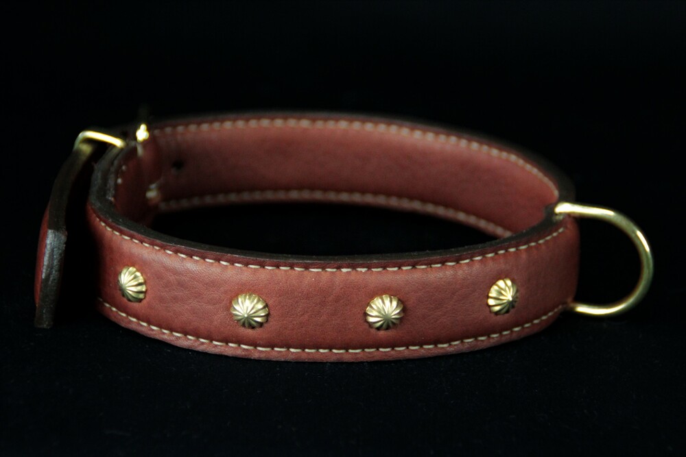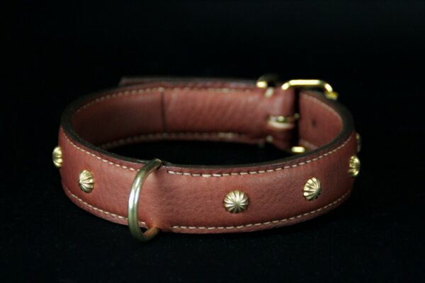 Collier pour chien  » Baranil  » en veau , petits rosaces en laiton 3 cm Large .