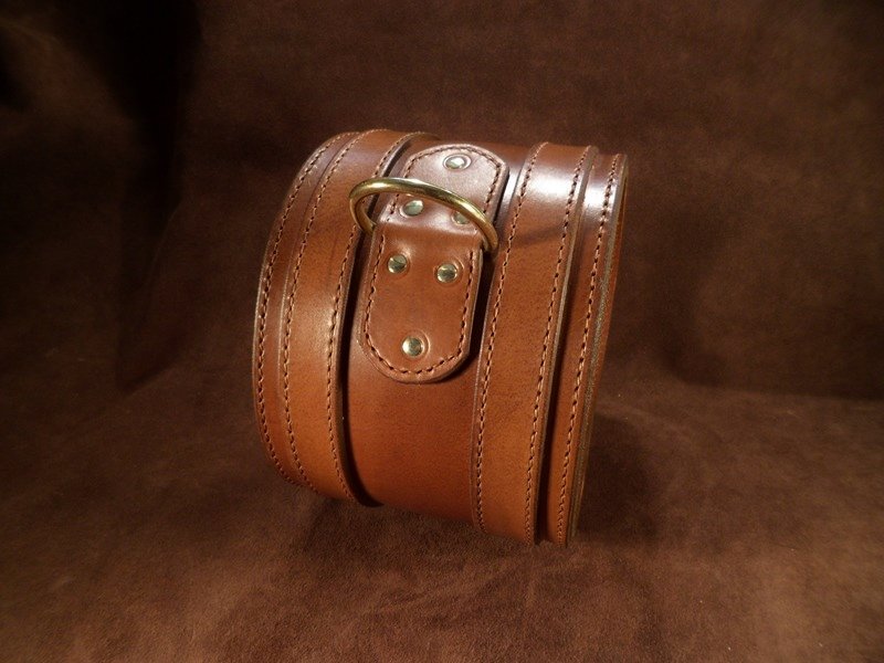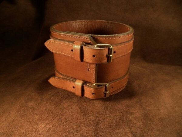 Collier pour Chien Extra Large – 12 cm de Large, Cuir Marron Clair & Laiton Massif .