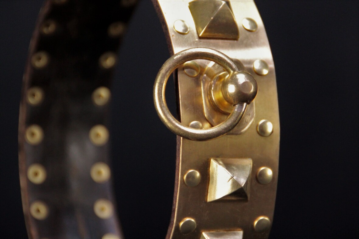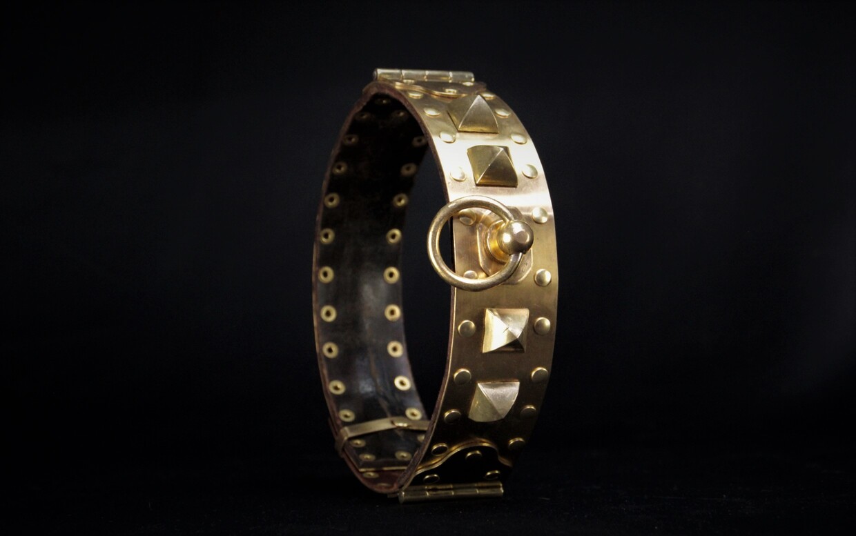 Ce collier exceptionnel s’inspire des colliers de chiens utilisés entre 1850 et 1900, à la fois fonctionnels et symboliques. Il se distingue par :