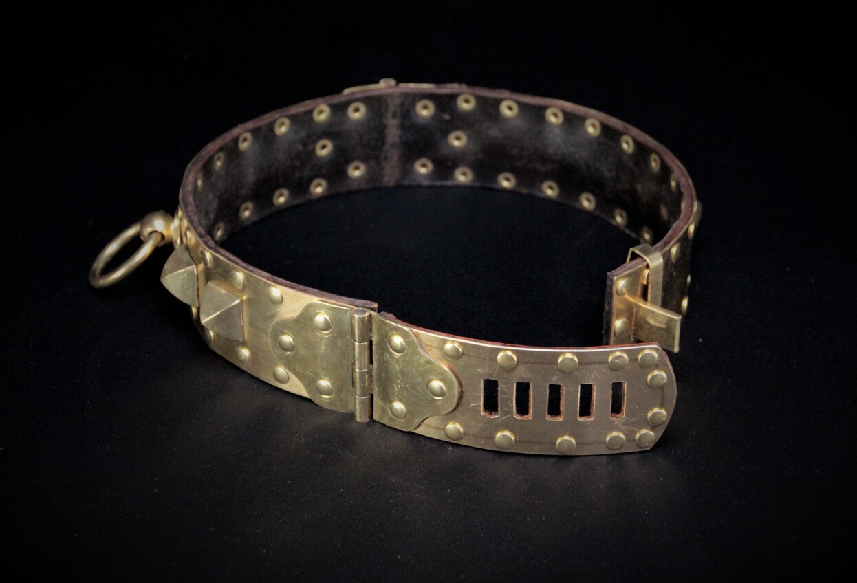 Collier pour chien façon 1850/1900 en laiton et cuir, fermeture cadenas .