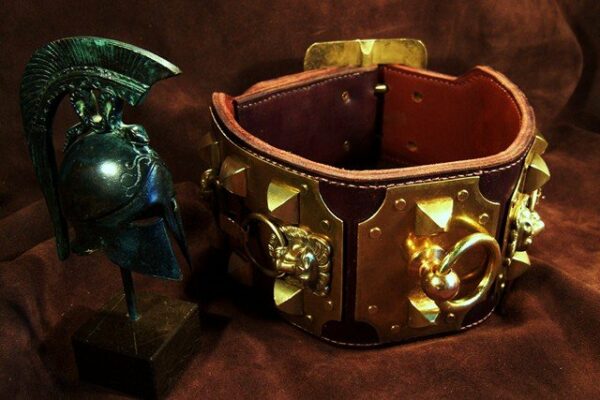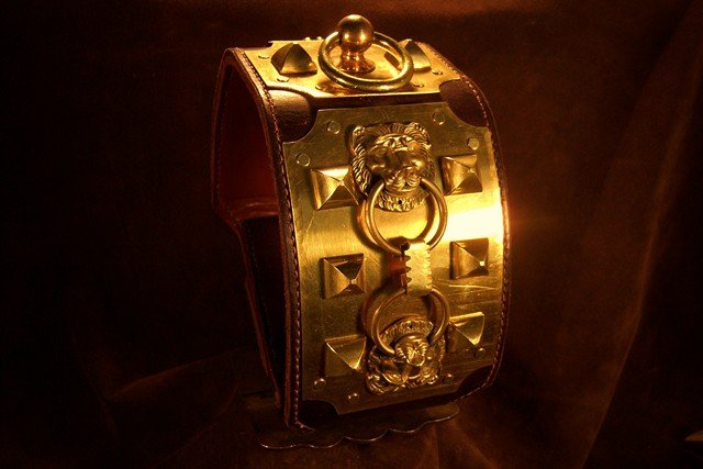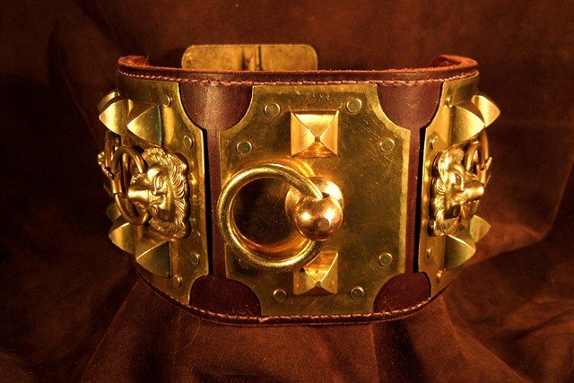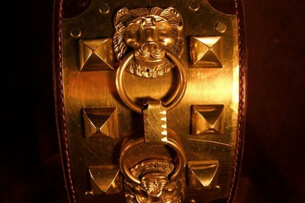 | Bouclerie, plaque et têtes de Lion en laiton massif. |