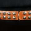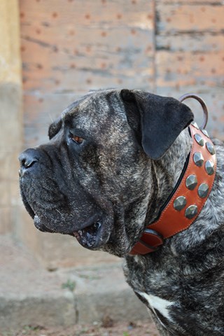 Les clous décoratifs façon forgé, la boucle et l’attache en métal patiné, ainsi que la couture sellier cousue main, renforcent le caractère unique et artisanal de cette création. Chaque détail évoque l’esthétique et la force des colliers d’antan, sans compromis sur la qualité et la sécurité.