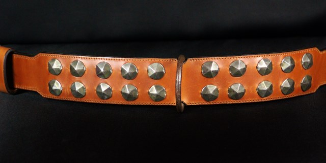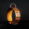 Collier pour chien « Médiéval » – Cuir marron clair, métal patiné – 7 cm de large – Pièce unique .