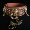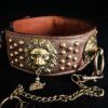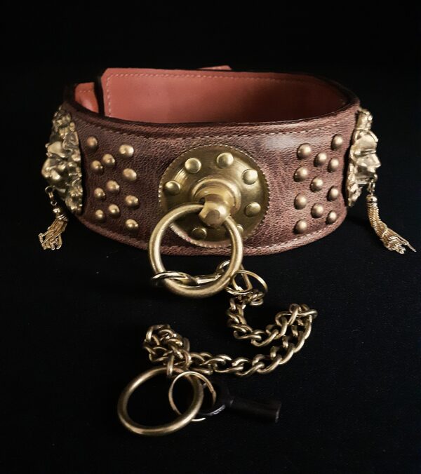 Collier pour chien en cuir avec têtes de lions & boucle à cadenas – Laiton massif & bronze – 6,5 cm – Modèle unique .