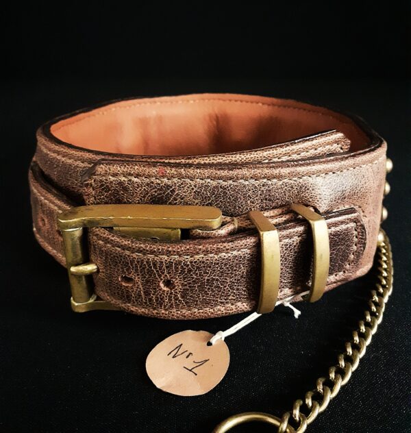 Offrez à votre compagnon un accessoire d’exception avec ce collier pour chien unique, alliance parfaite entre cuir noble, détails historiques et savoir-faire artisanal. Ce modèle exclusif séduit par son design puissant et raffiné, sublimé par une fermeture à cadenas en bronze d’époque (XIXe siècle).