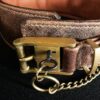 Ce modèle se distingue par ses ornements en laiton massif : têtes de lion sculptées, clous décoratifs, passants, attache, ainsi qu’une boucle ancienne à clé en bronze, véritable pièce de collection. L’ensemble est cousu main selon la méthode sellier, garantissant robustesse et finitions haut de gamme.