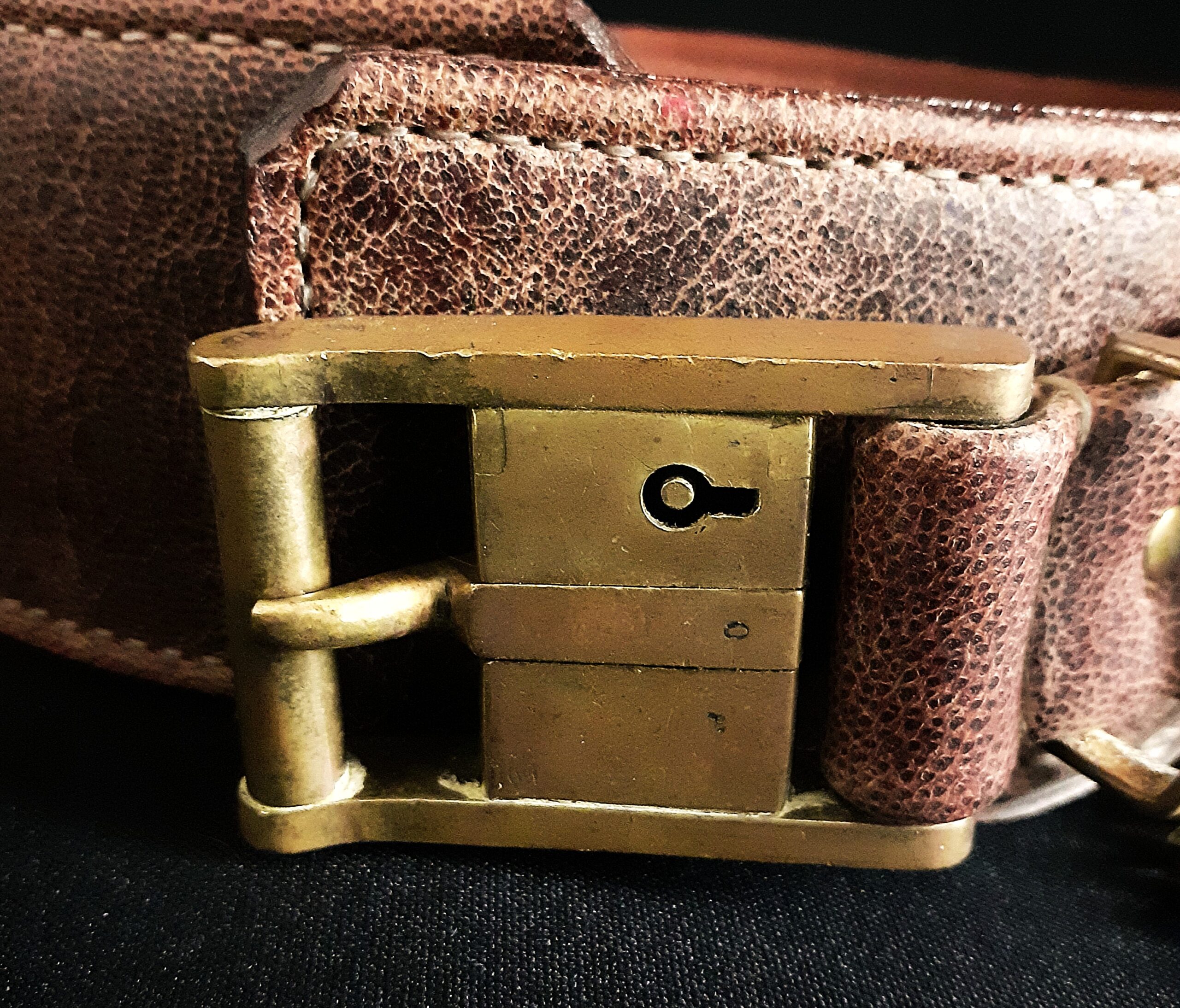 • Bouclerie, têtes de lion, clous, passants, attache : laiton massif