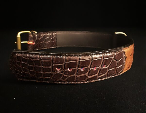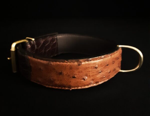 Collier pour chien en cuir d’autruche et cuir de crocodile .