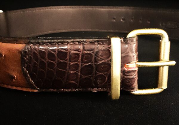 Cuir extérieur : autruche marron moyen & crocodile marron foncé