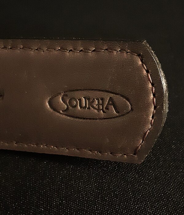 Large de 4 cm, ce collier convient parfaitement aux chiens de moyenne à grande taille. Il est équipé d’une boucle, d’un passant et d’une attache en laiton massif, gage de solidité et d’élégance. La couture « sellier » entièrement réalisée à la main témoigne d’un véritable savoir-faire artisanal, assurant à chaque pièce une finition impeccable et une longévité accrue.