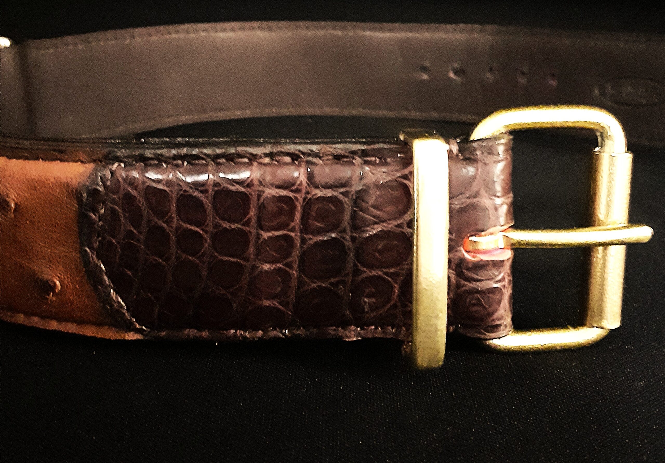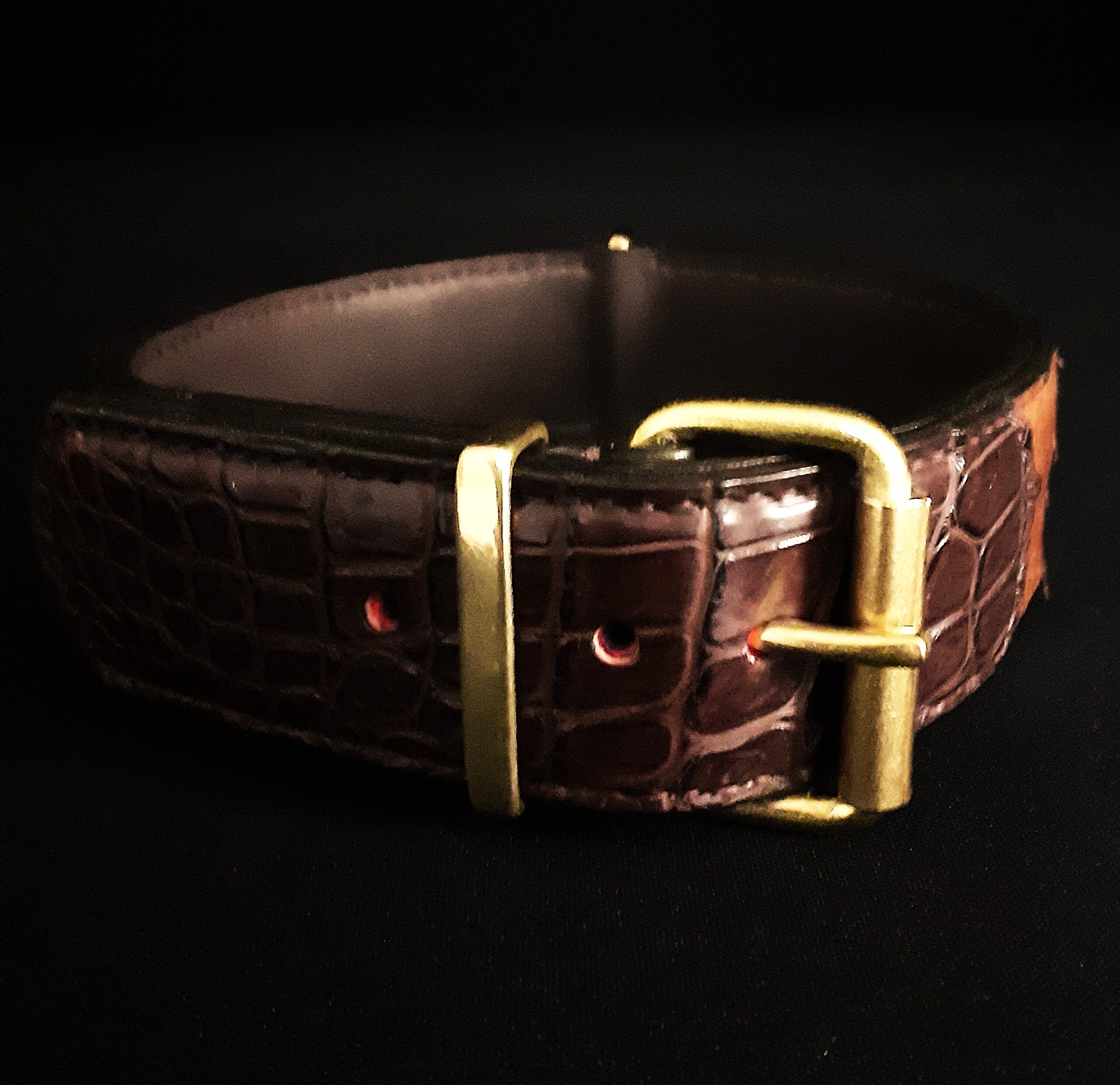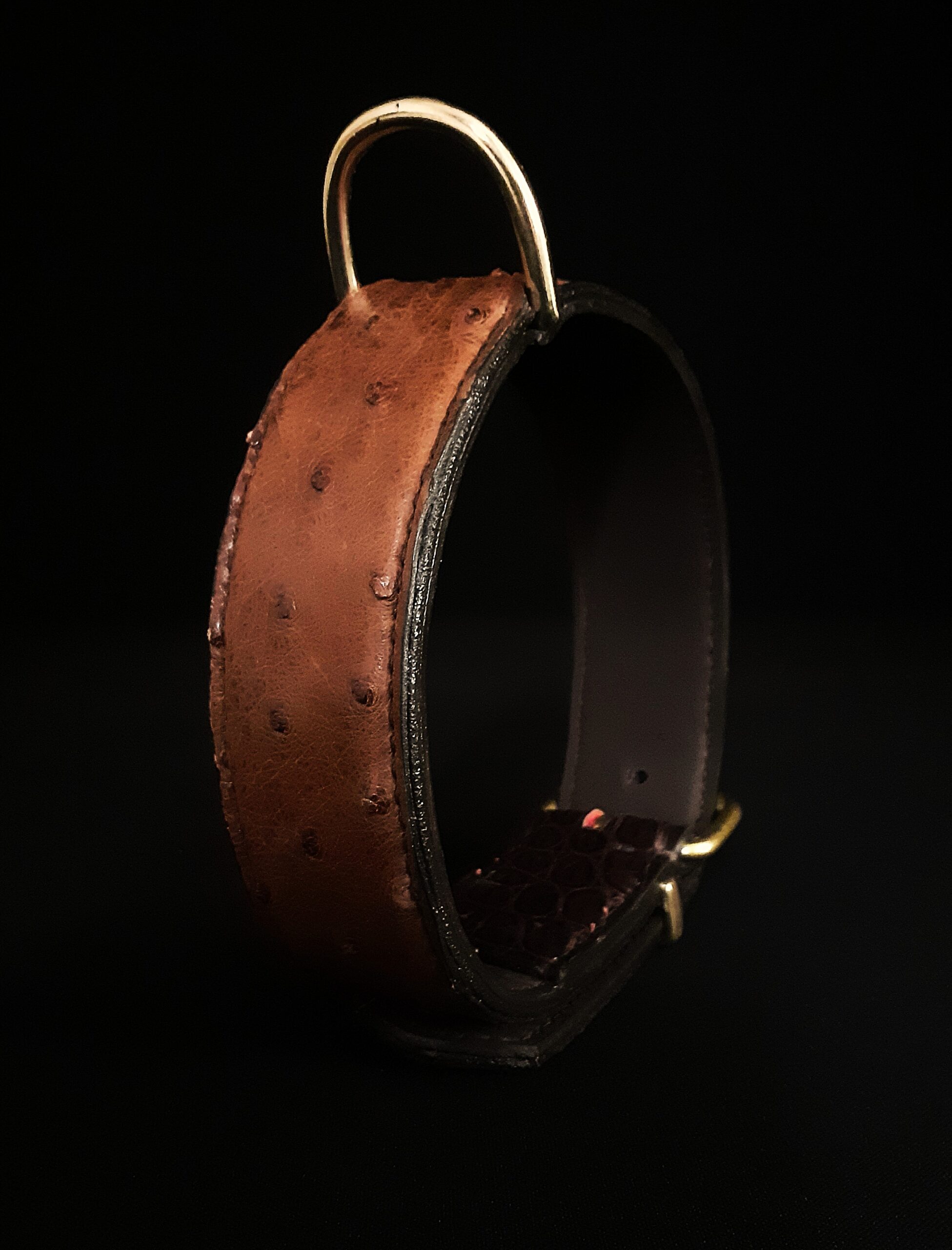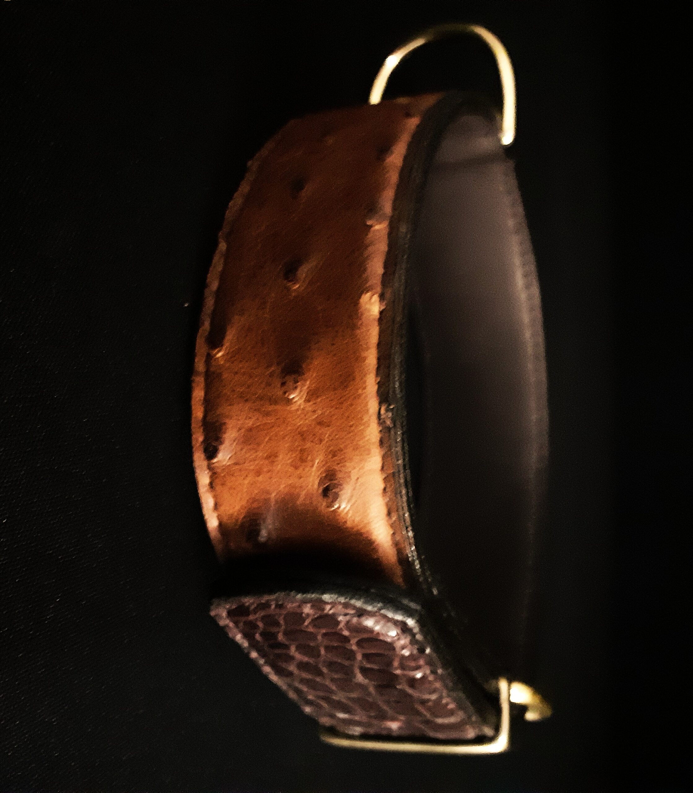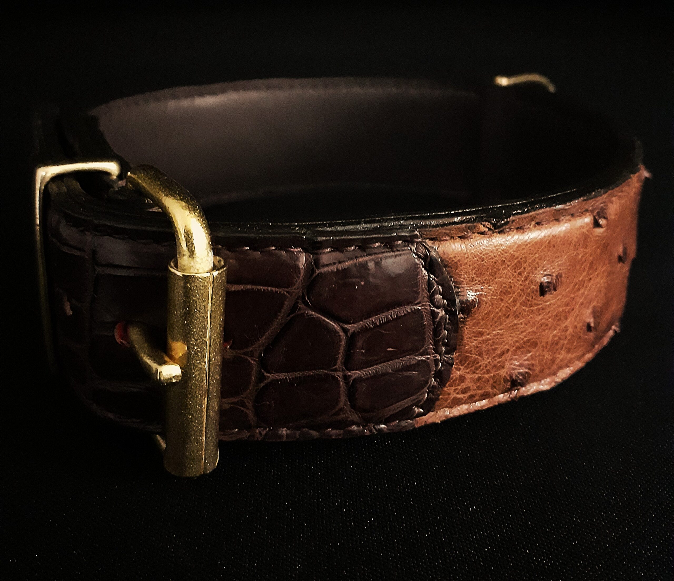 Collier pour chien en cuir d’autruche et cuir de crocodile .