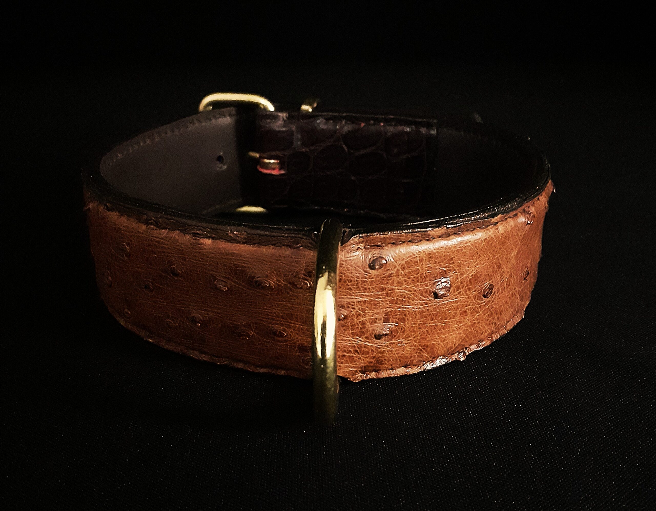 Collier pour chien en cuir d’autruche et cuir de crocodile – Fait main, luxe et élégance .