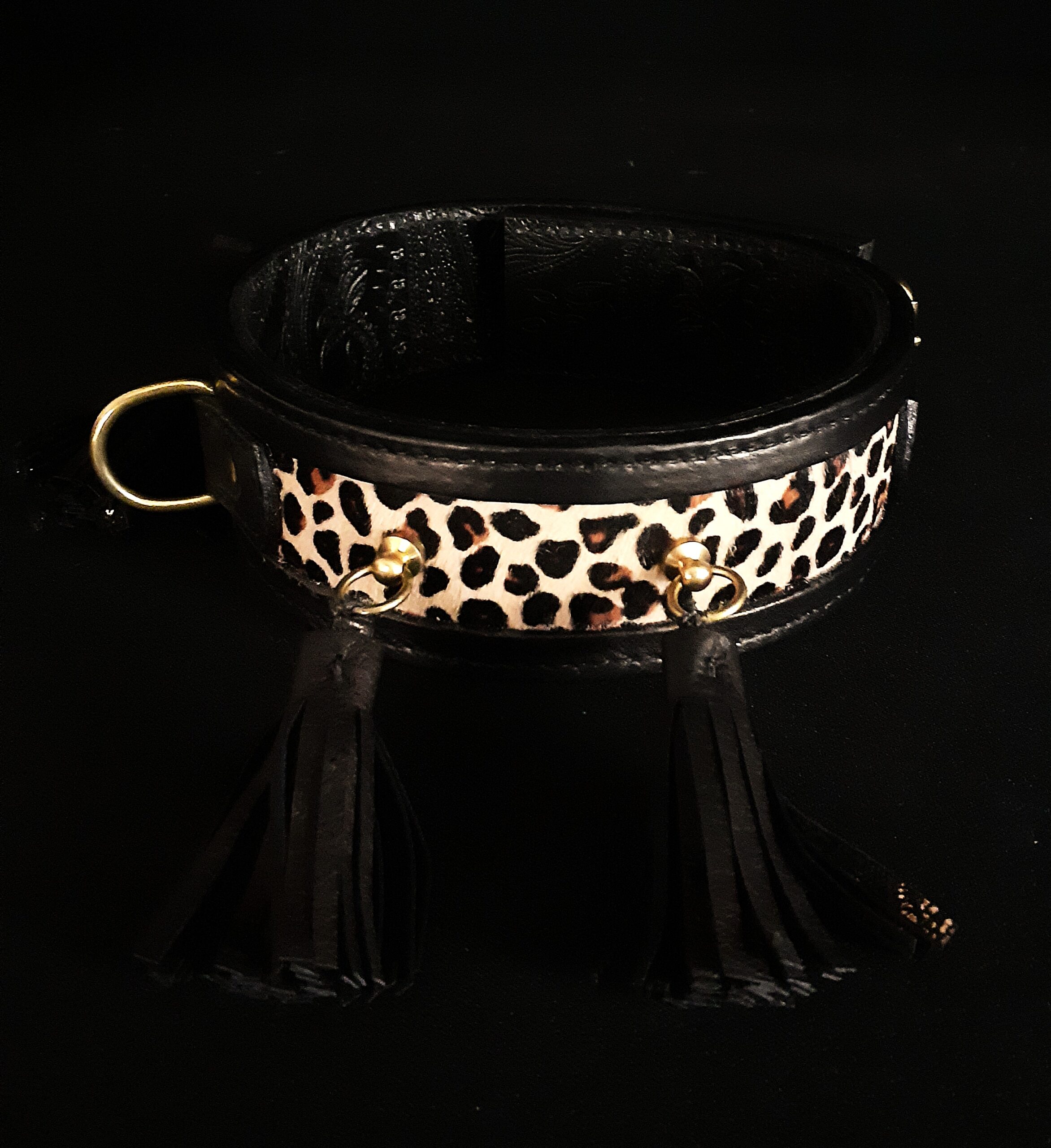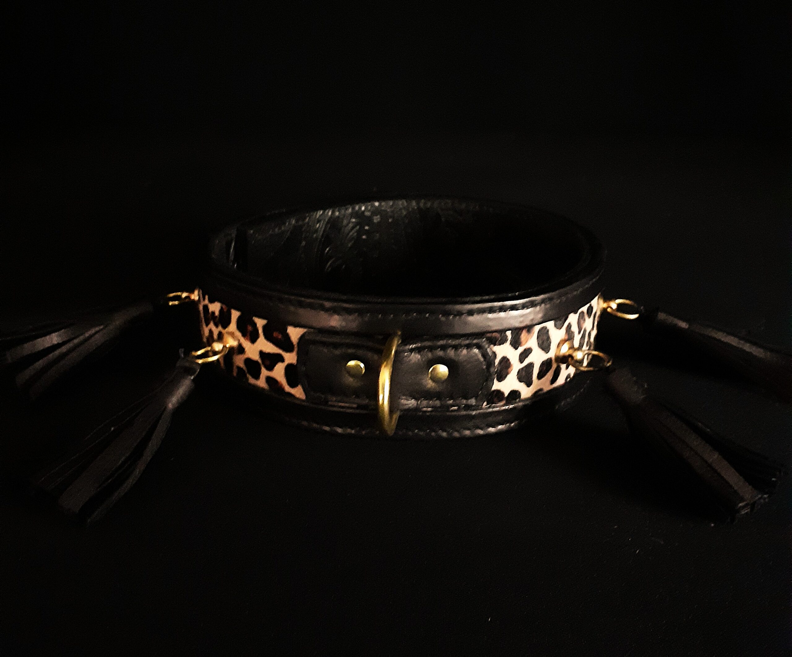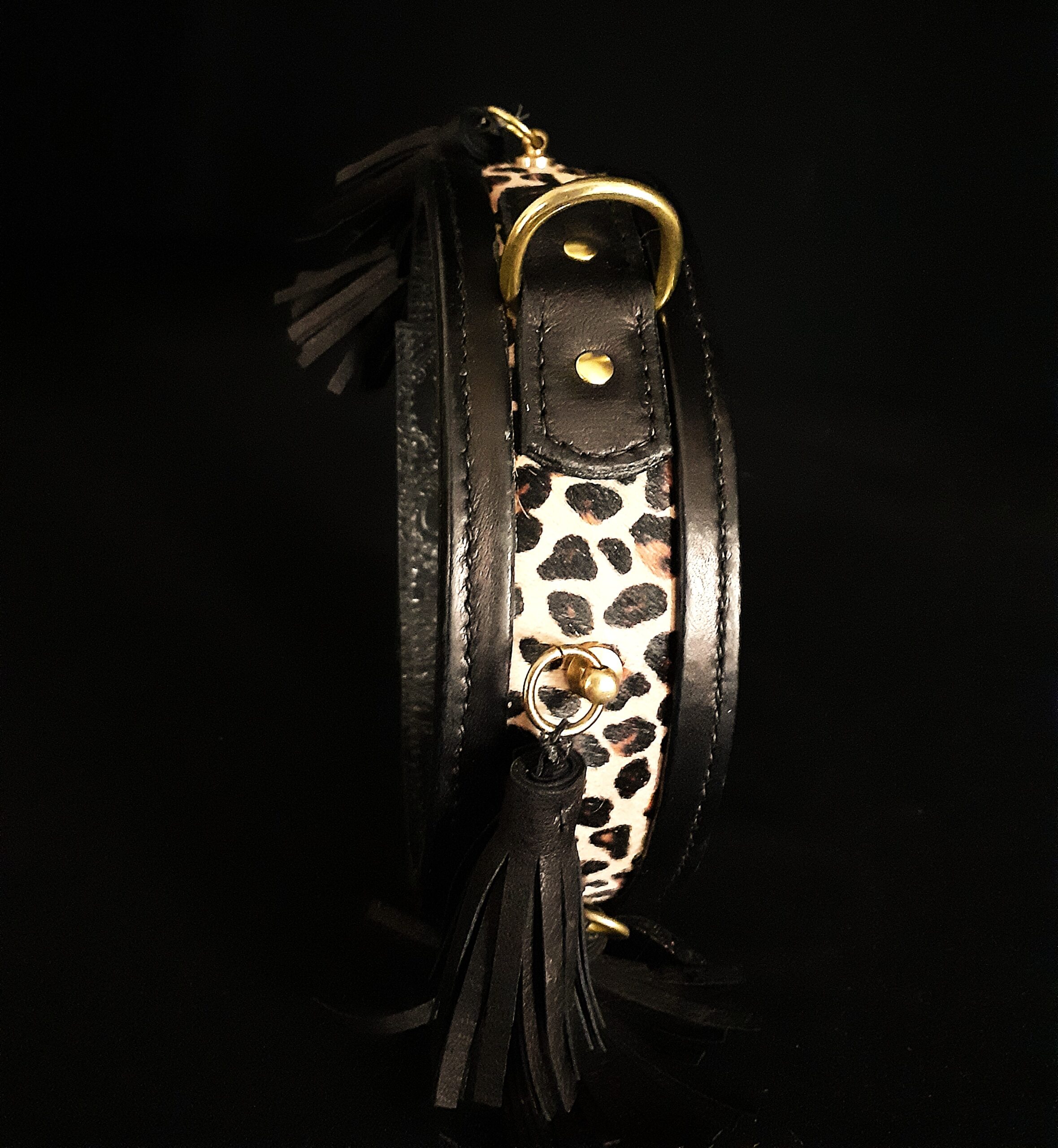 Collier pour chien » Panthère » cuir vachette imprimé panthère .