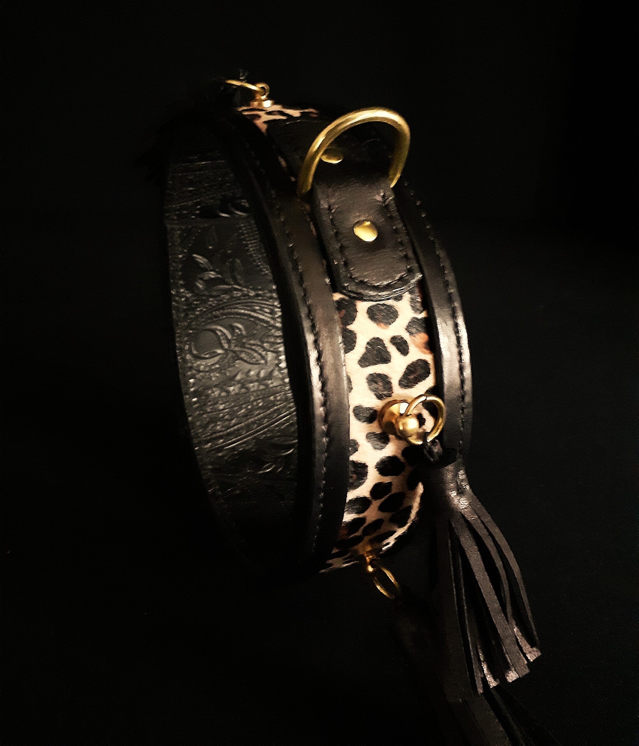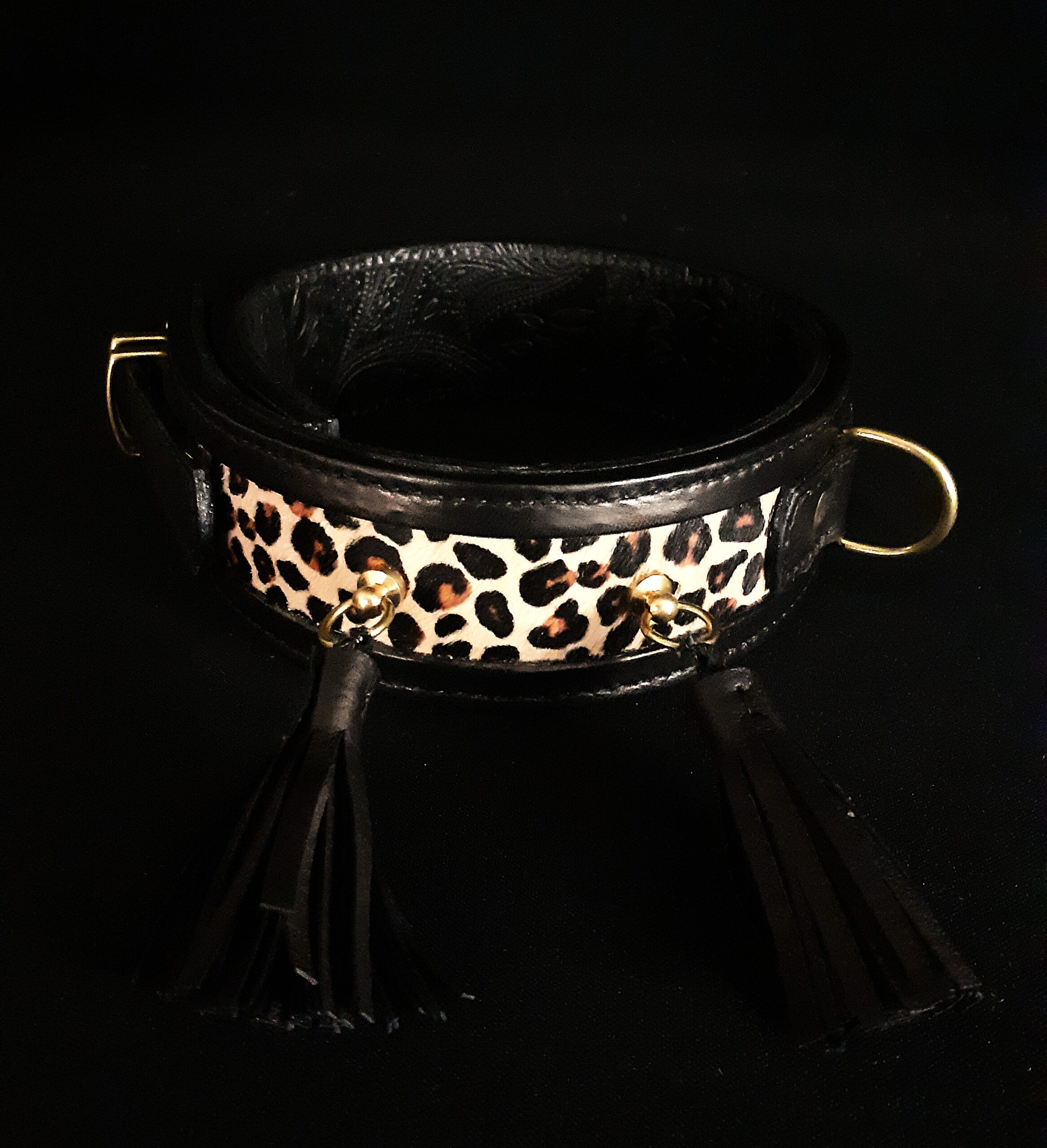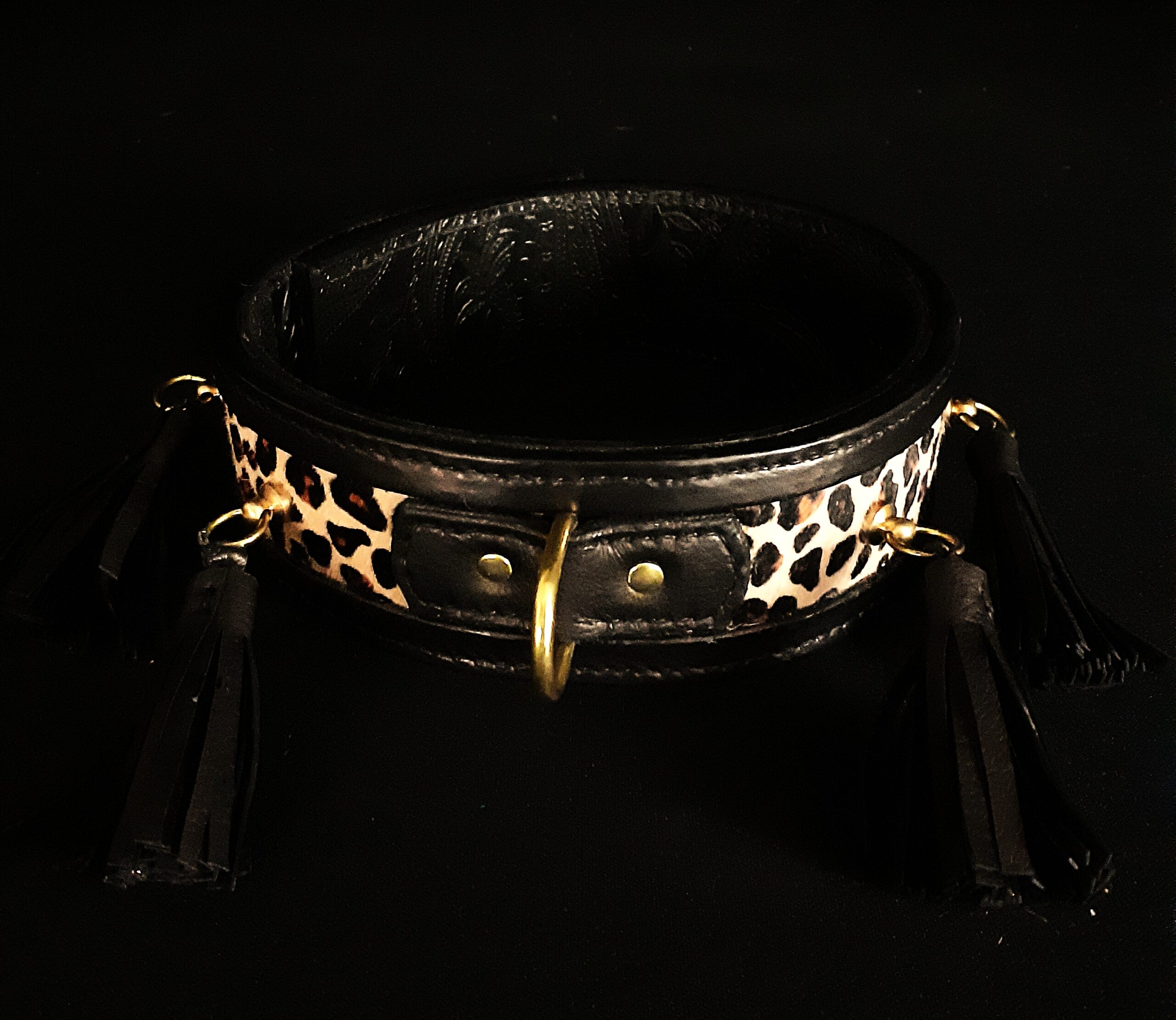 Collier pour chien » Panthère » cuir vachette imprimé panthère .