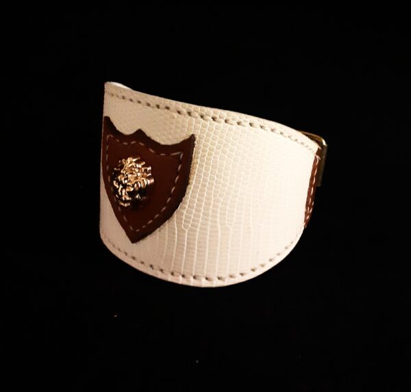 Cuir dessus : lézard blanc avec extrémités en agneau marron clair.