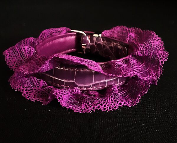 Collier pour Petit Chien en Croco et Dentelle Violette –