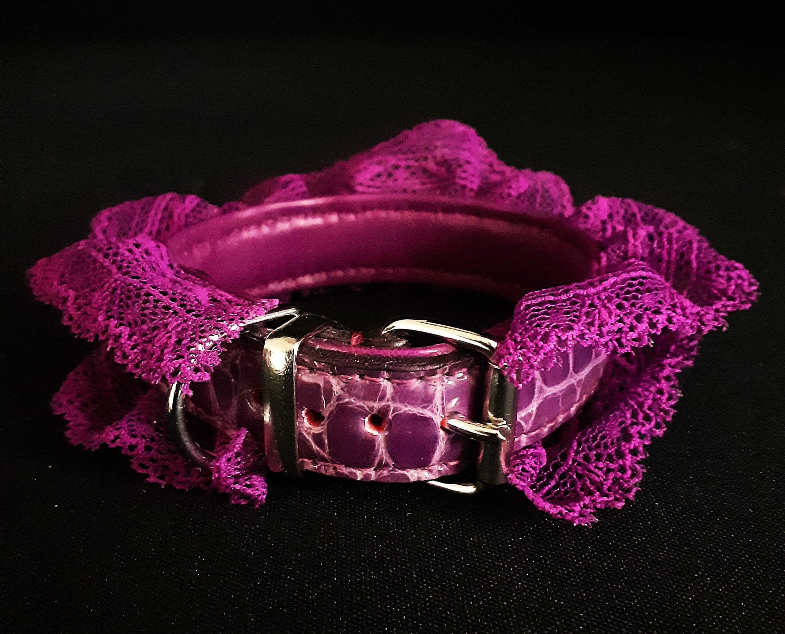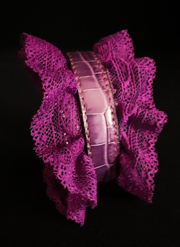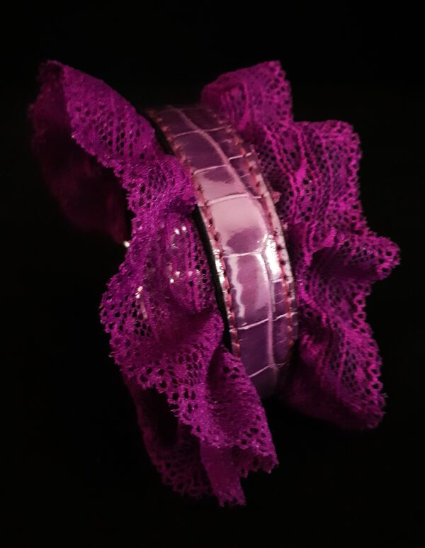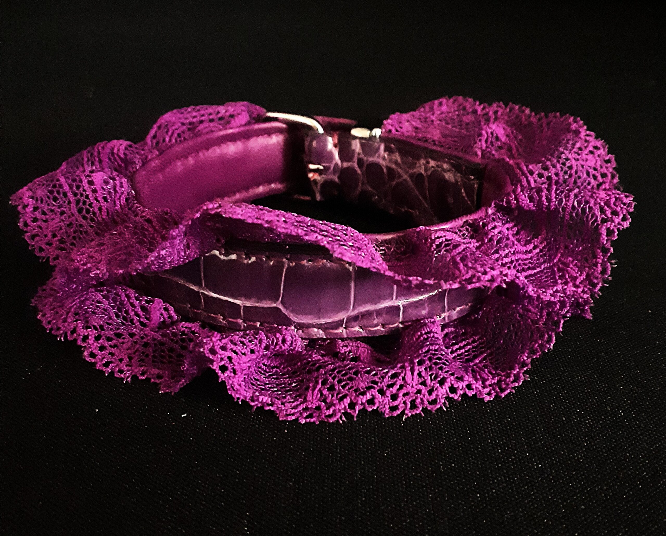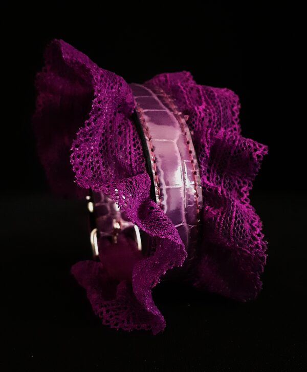 Collier pour Petit Chien en Croco et Dentelle Violette .