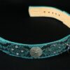 Les finitions sont soignées : boucle, attache, passant et clous décoratifs sont en métal nickelé, résistants et modernes. Des disques de décoration en métal argenté ajoutent une touche de sophistication supplémentaire. Entièrement cousu main selon la technique du point sellier, ce collier est aussi solide qu’élégant.