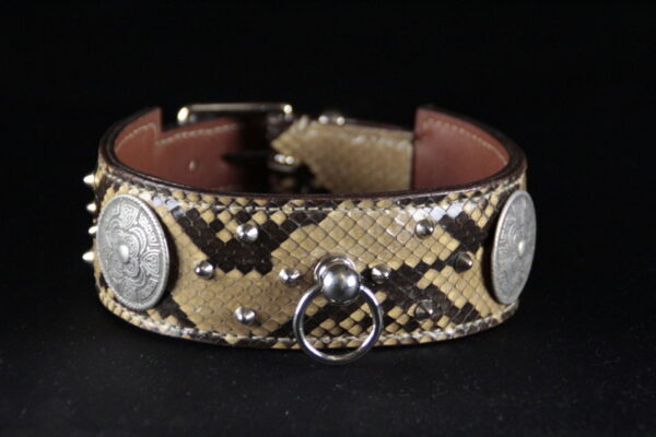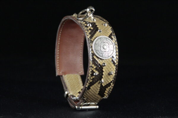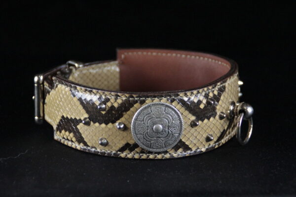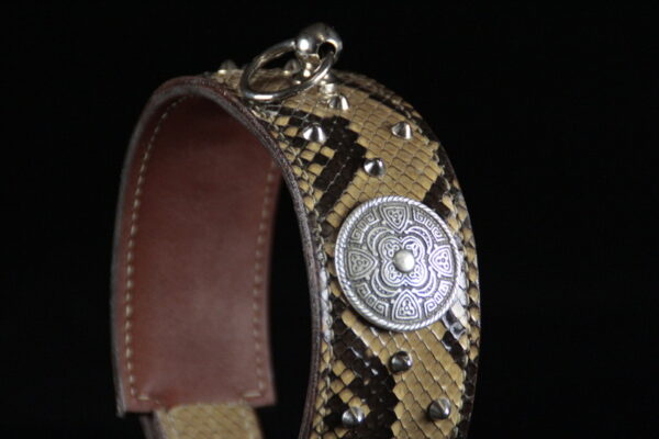 Collier pour chien en cuir de python – 4,5 cm de large – Décorations métal argenté .