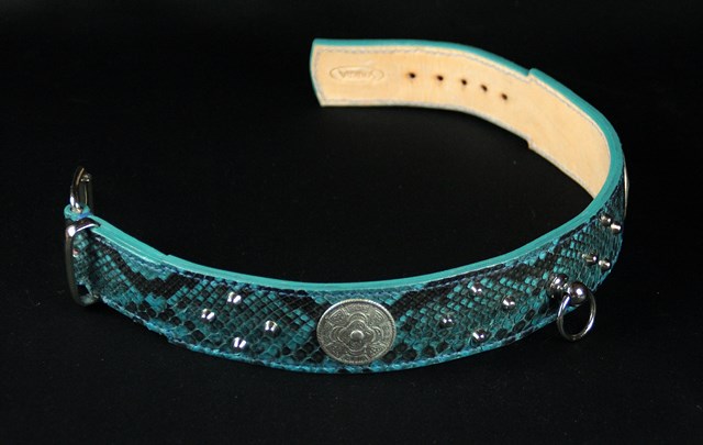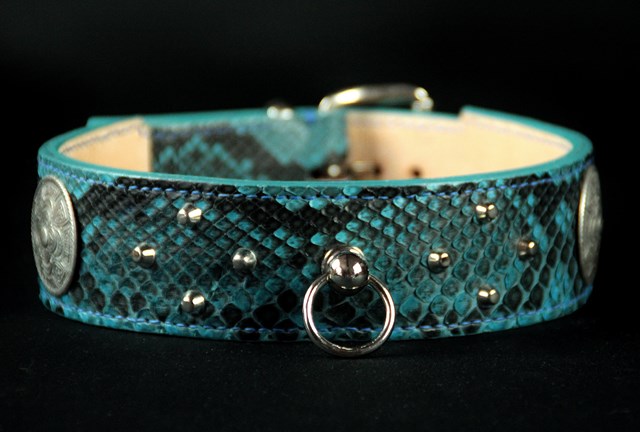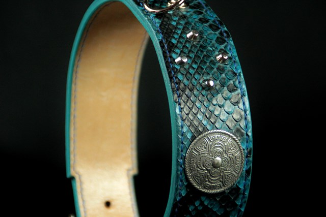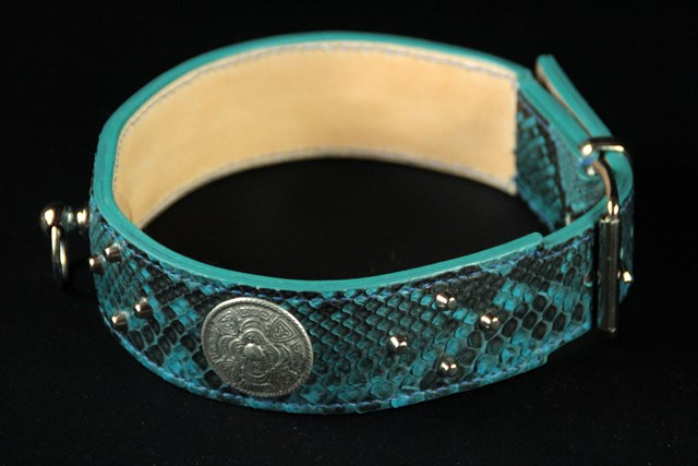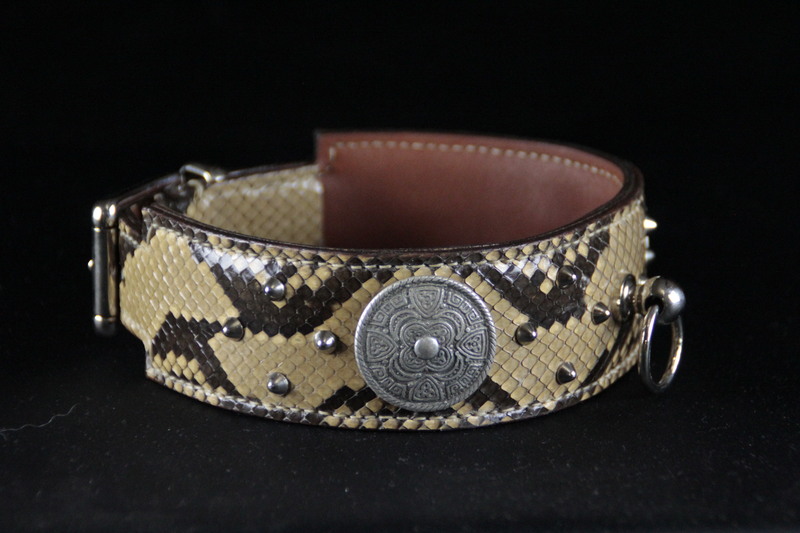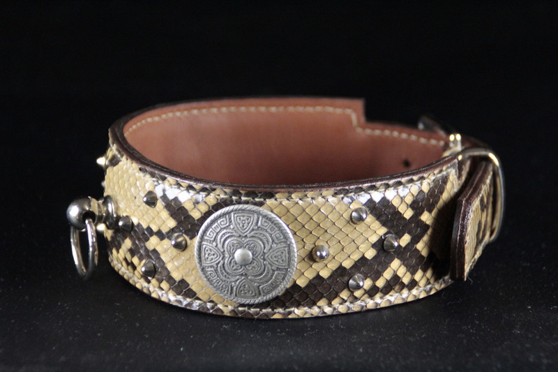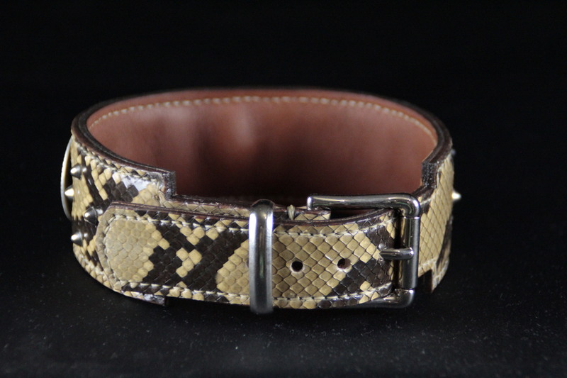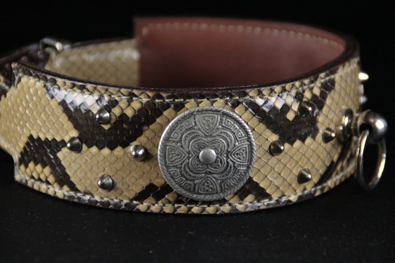 Collier pour chien en cuir de python – 4,5 cm de large – Décorations métal argenté .