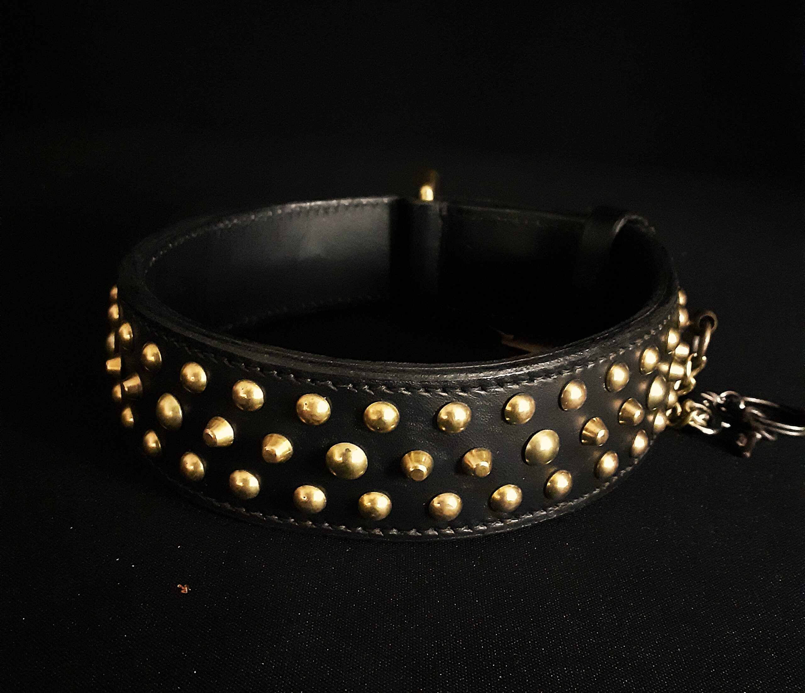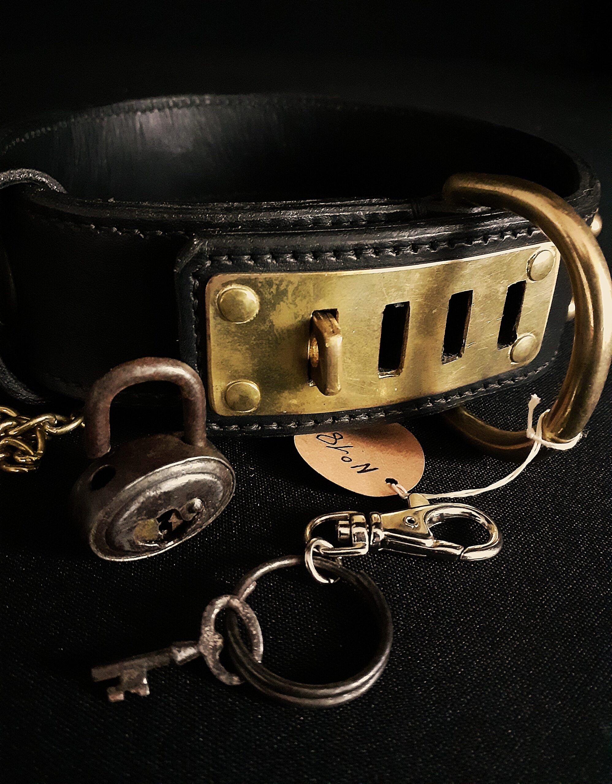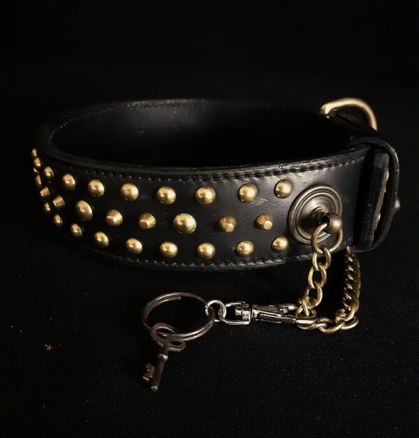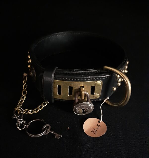 Chaque pièce est unique et peut être ajustée à la taille de votre chien, avec un autre cadenas sur demande.