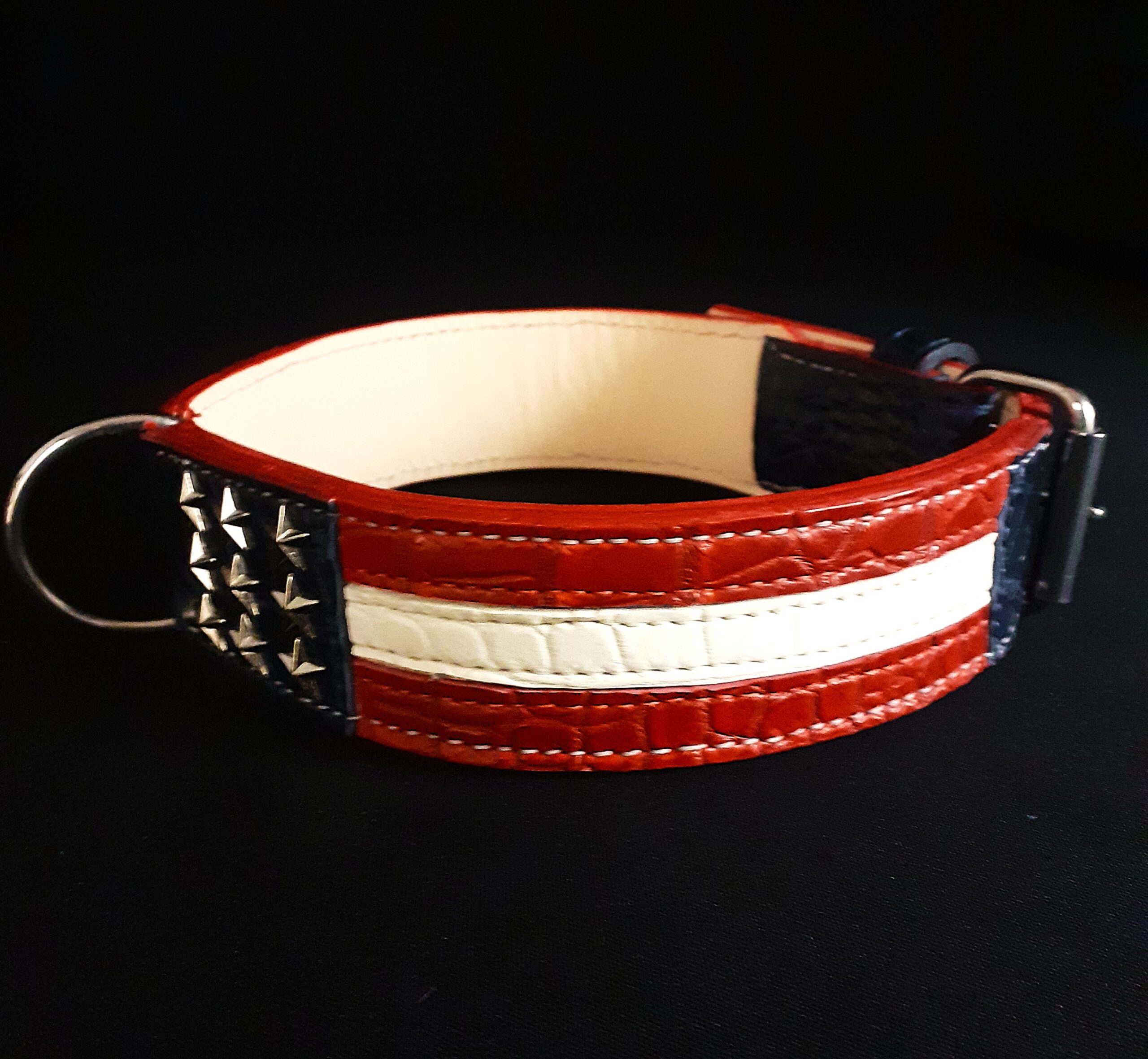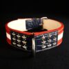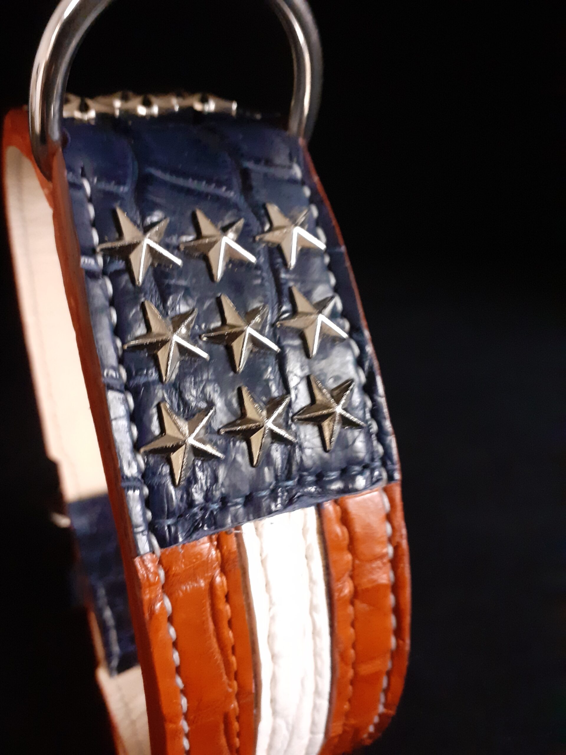 Tous nos colliers sont cousus main, fabriqués à la demande et sur-mesure, ils sont réalisés avec des peaux de premier choix et des matériaux faits pour durer (Par exemple, nous n’utilisons que du laiton massif pour garantir la couleur à long terme) |