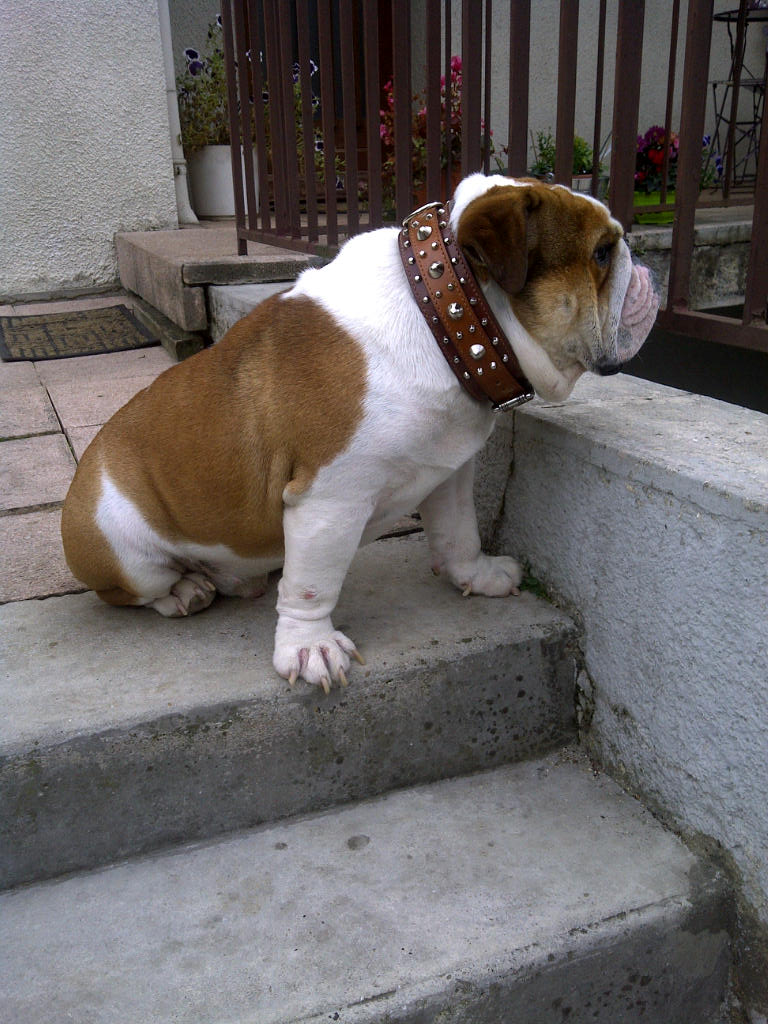 | Fonzy porte le collier réf: 0169 , couleurs: extérieure marron foncé, intérieur marron clair. |