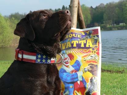| Galak porte un collier « Américain »adapté, nous avons réduit sa largeur originale. |
