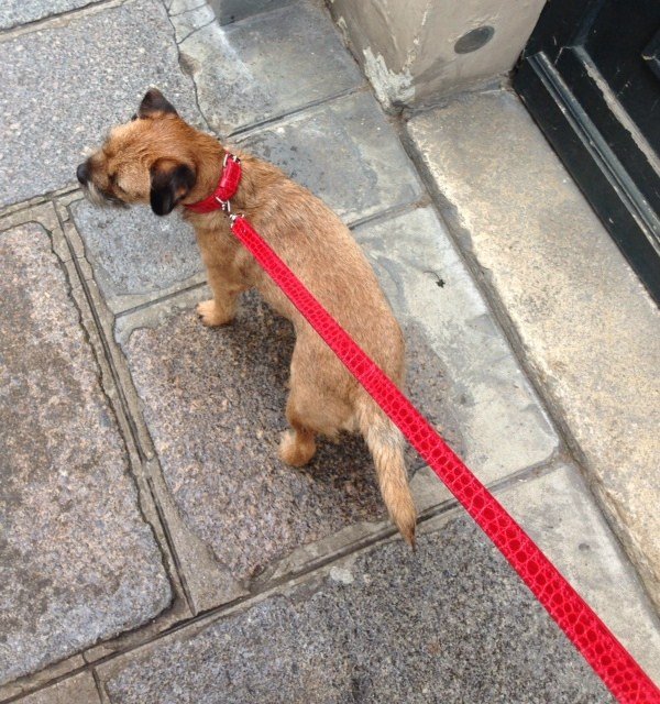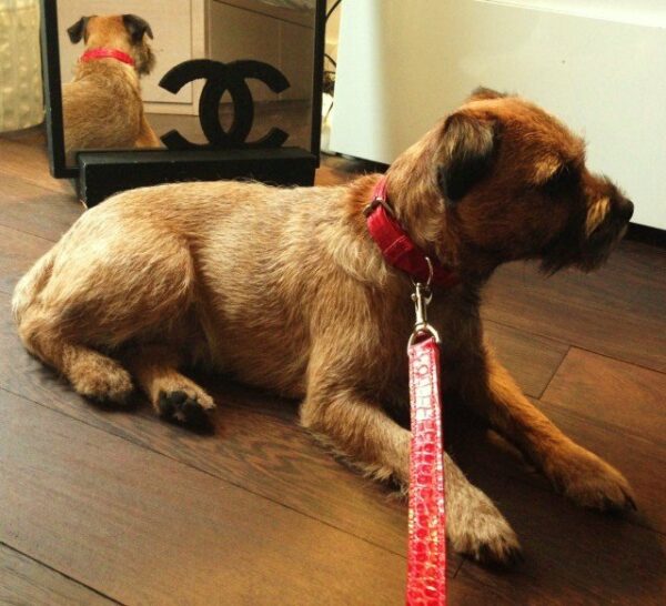 | La laisse et le collier sont doublés avec de l’agneau rouge. |