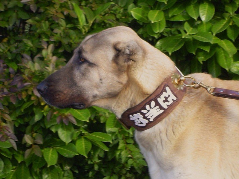 | Voici le collier « Chinois » les lettres sont découpées dans du Galuchat blanc. réf: 012 |
