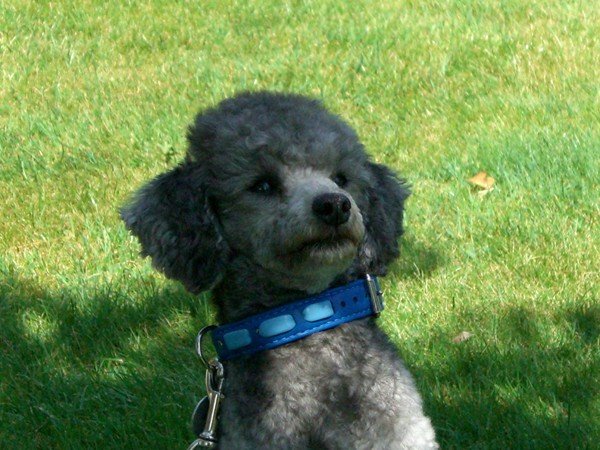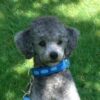 | Il porte un collier entiérement en agneau, bleu roy et laniére bleu ciel , avec sa laisse assortie. |