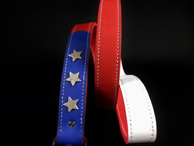 | Laisse en cuir vachette » Americaine »doublée, cousue main |