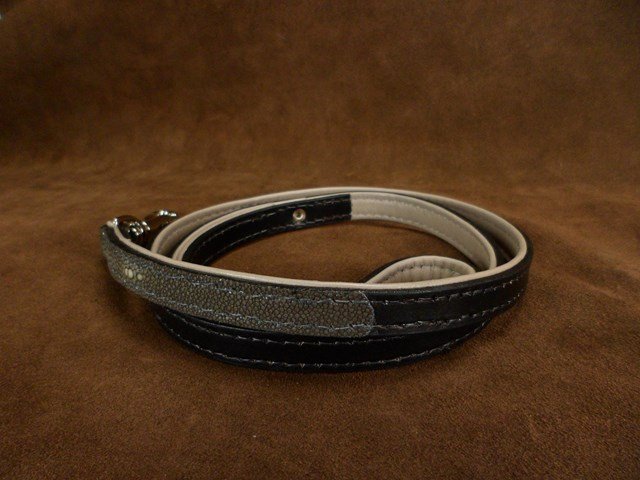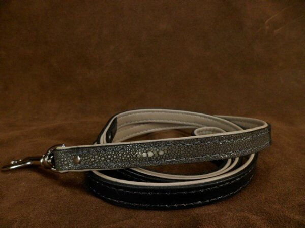 Laisse en cuir vachette doublée 1,3 cm de large rappel galuchat réf: 0235