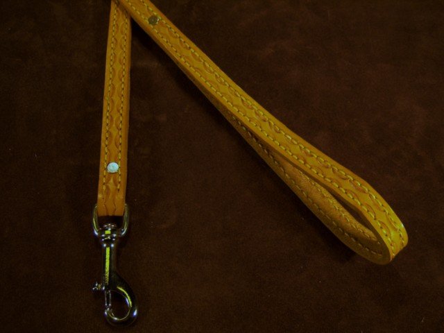| Laisse en cuir vachette doublée, cousue et martelée à la main