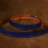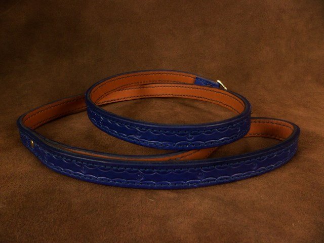 | Laisse en cuir vachette doublée, cousue et martelée à la main