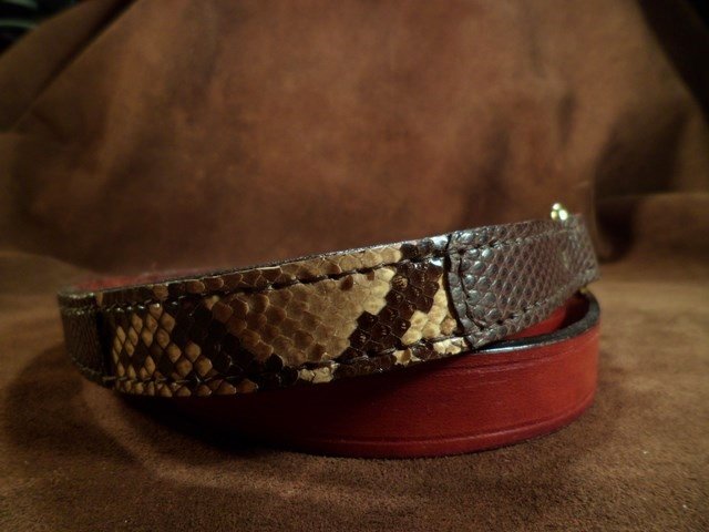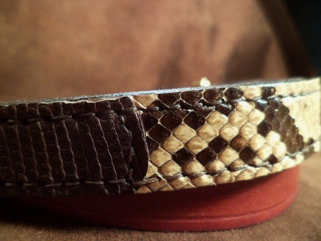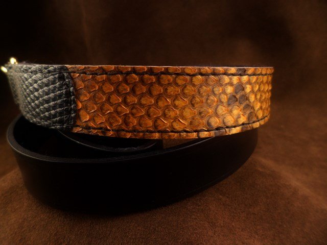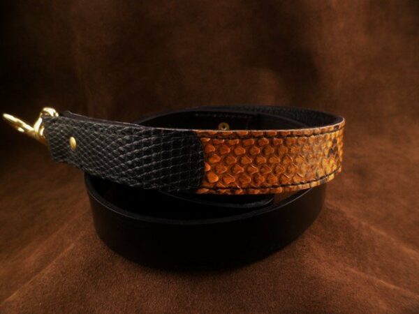 Laisse en cuir vachette-python/lézard 2 cm de large