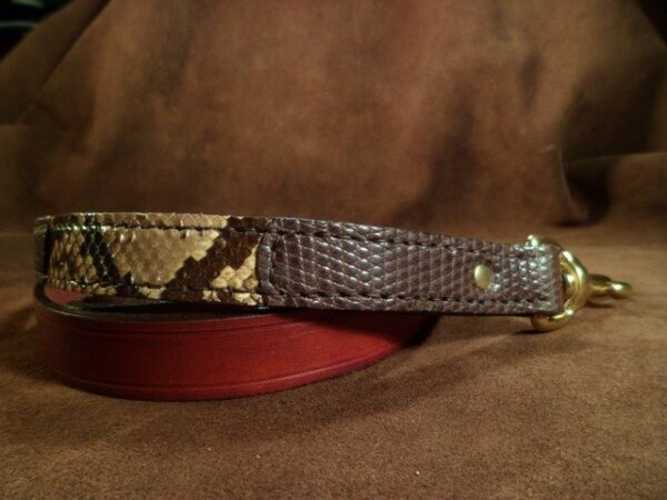 | Laisse simple (non doublée, non cousue) en cuir vachette avec rappel python/lézard |