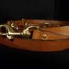 | Boucle, rivets, mousqueton en laiton massif ou nickelés selon la couleur de la laisse choisie. |