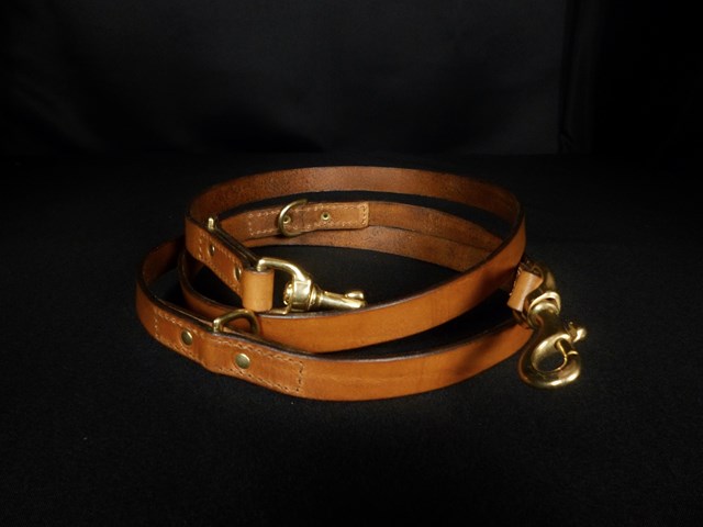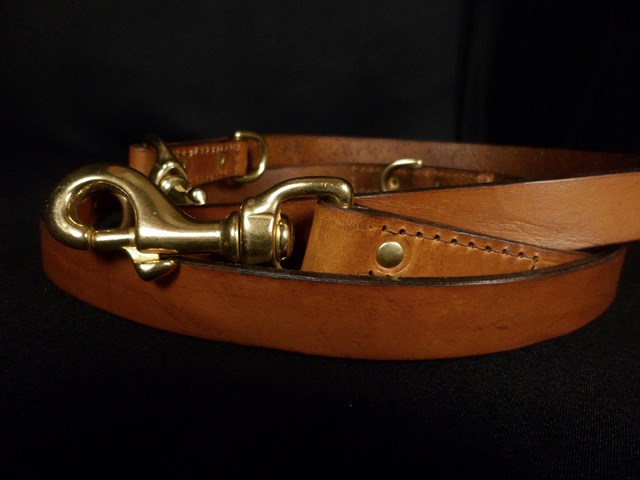 | Boucle, rivets, mousqueton en laiton massif ou nickelés selon la couleur de la laisse choisie. |