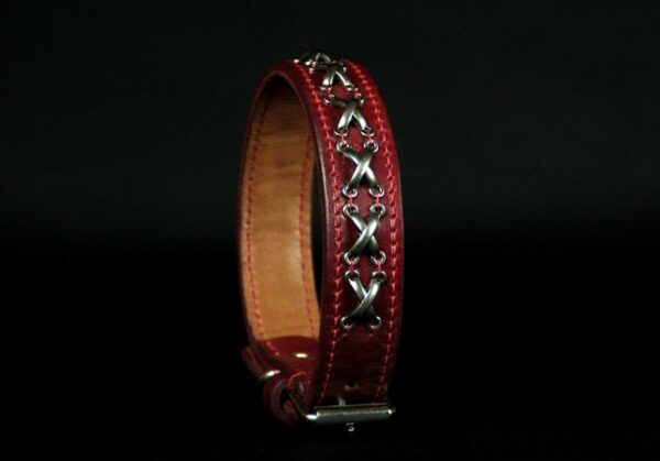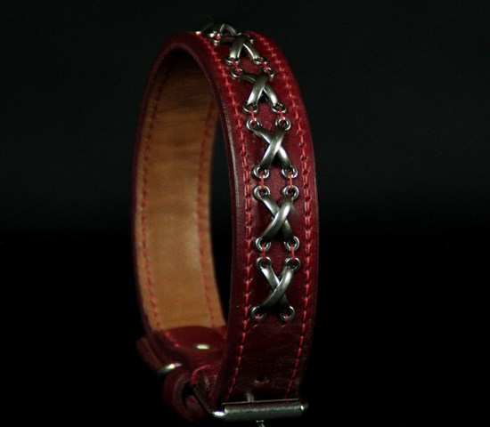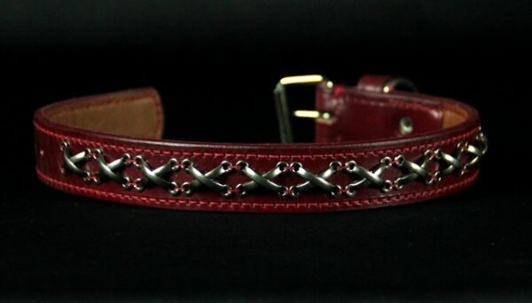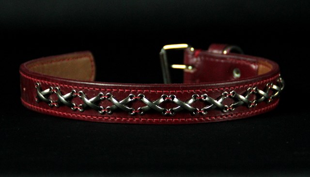 Collier pour chien « Celte » en cuir – 2,5 cm de large – Décor façon titane (sur devis) .