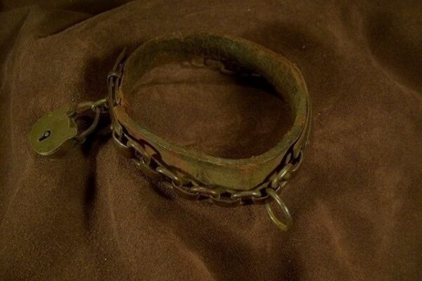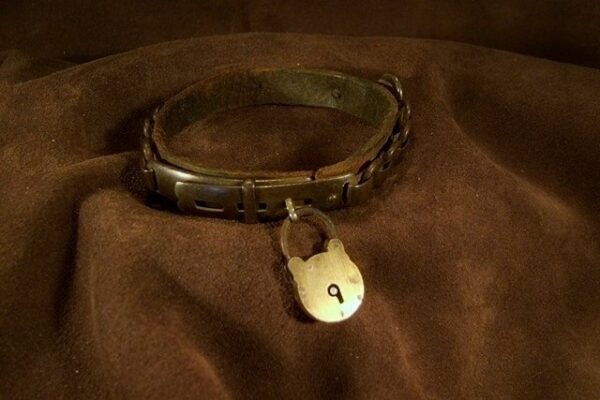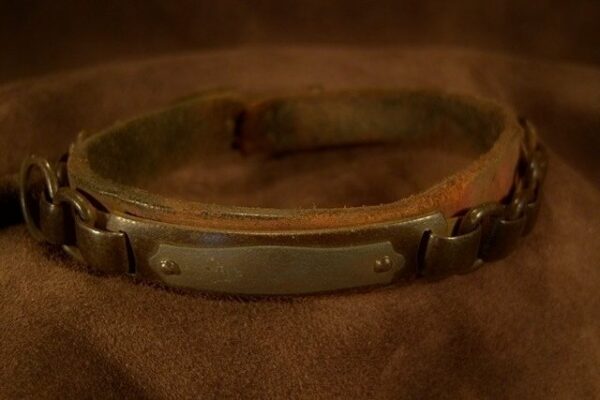 | Collier en acier et cuir du début du 19 éme siècle. |